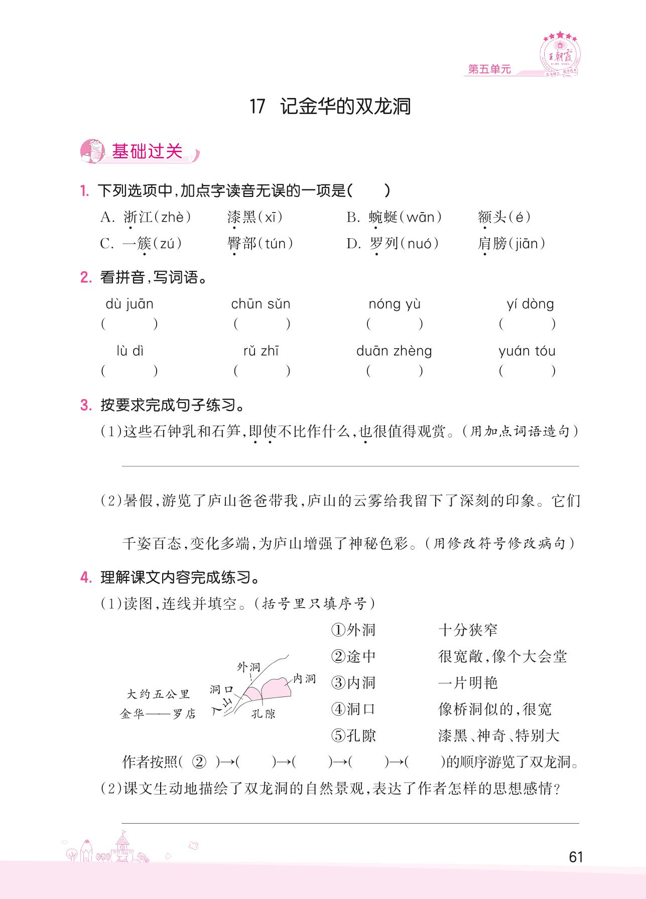 2022下册四年级语文人教版 第五单元——17 记金华的双龙洞