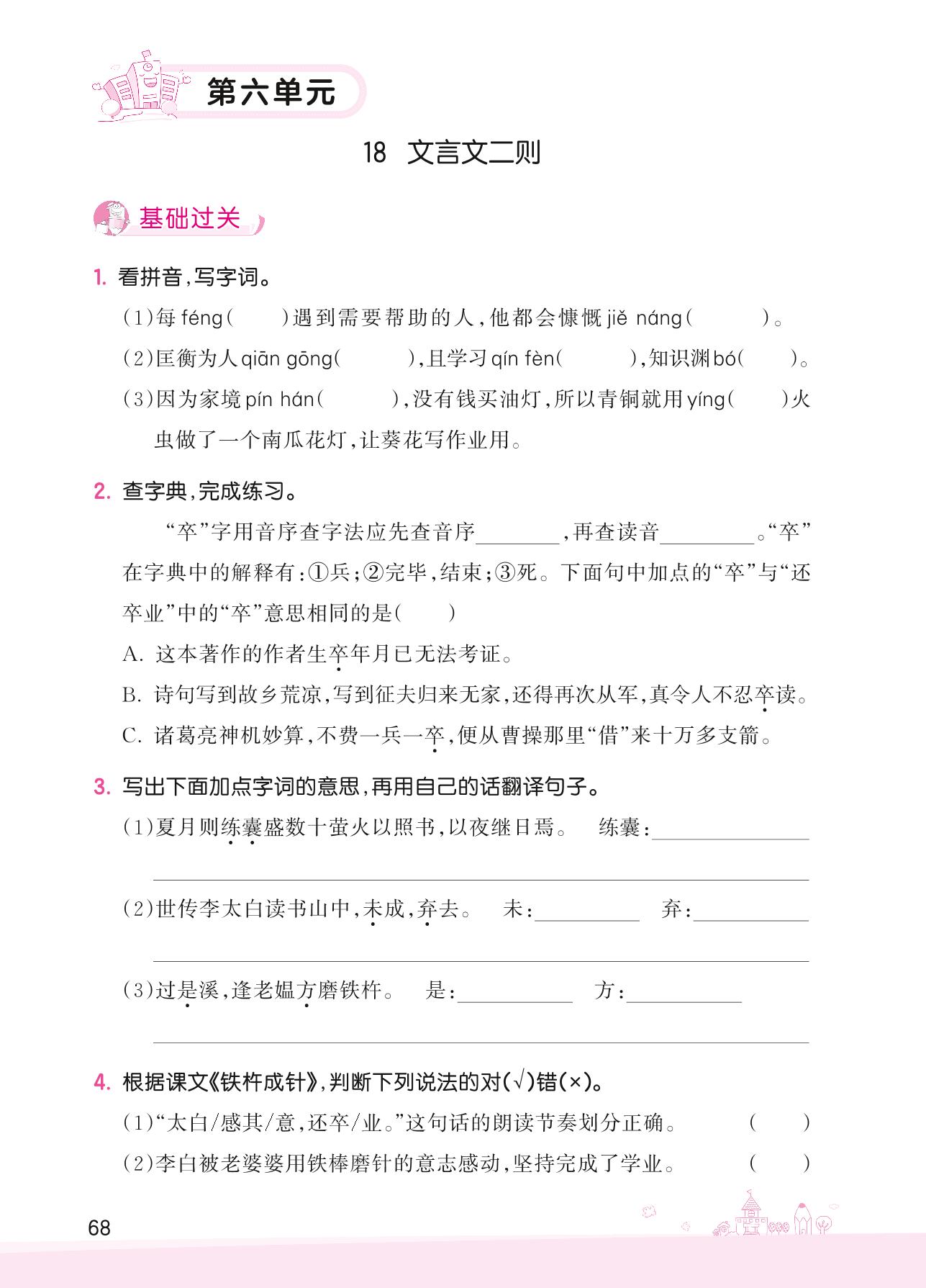 2022下册四年级语文人教版 第六单元——18 文言文二则