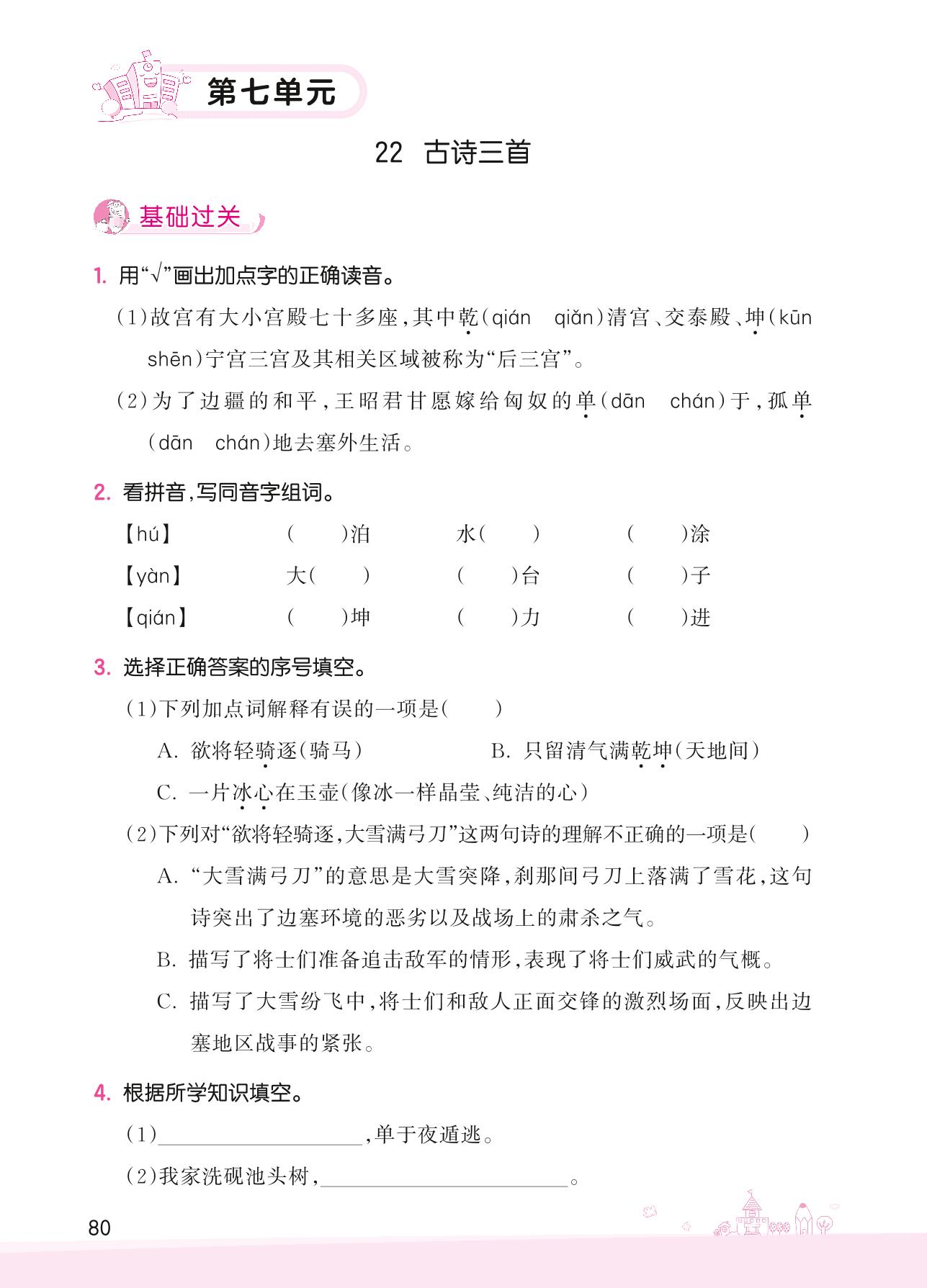 2022下册四年级语文人教版 第七单元——22 古诗三首