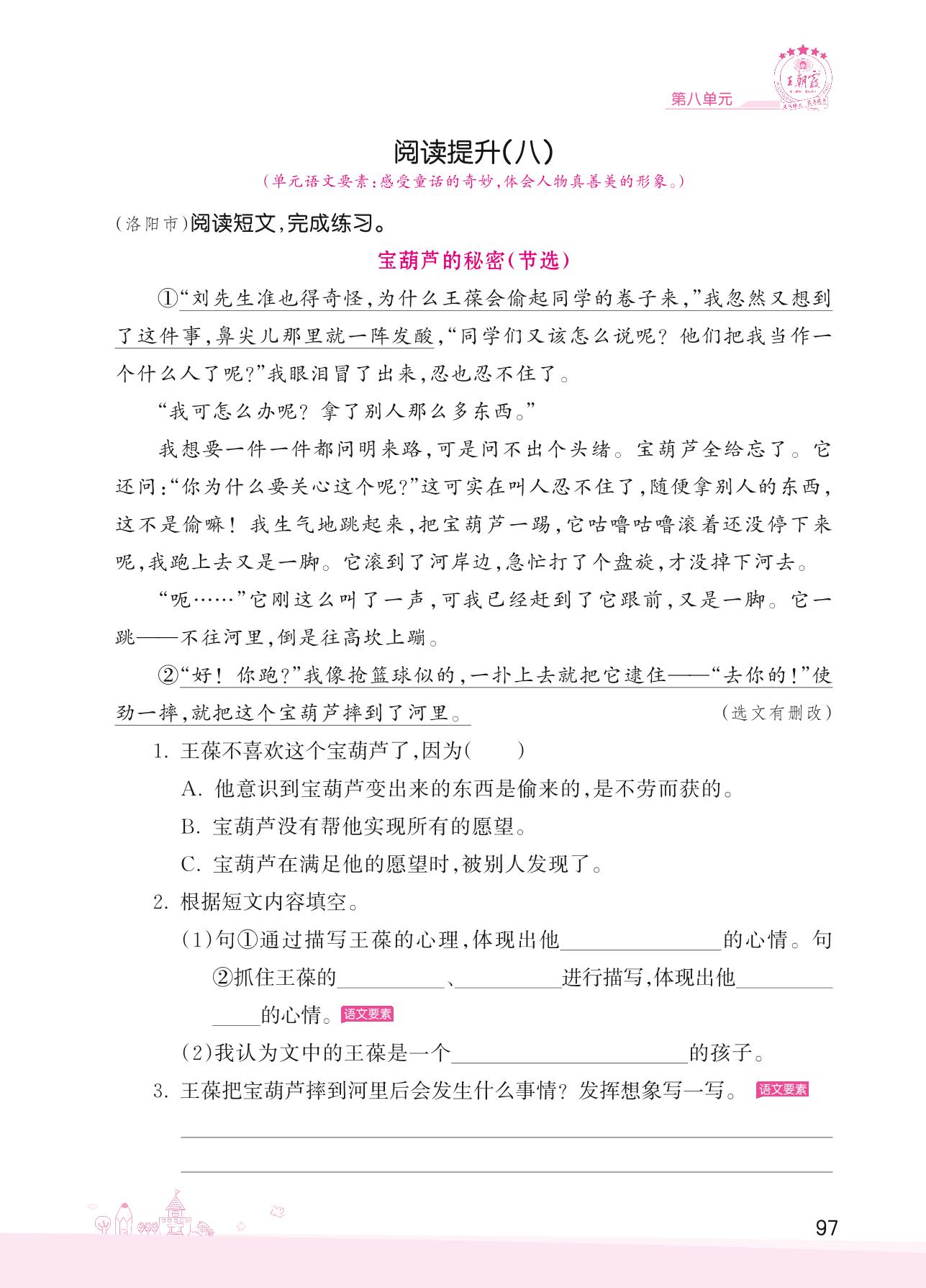 2022下册四年级语文人教版 第八单元——阅读提升(八)