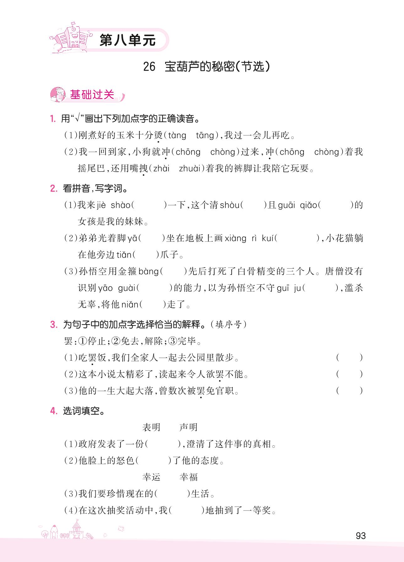 2022下册四年级语文人教版 第八单元——26 宝葫芦的秘密(节选)