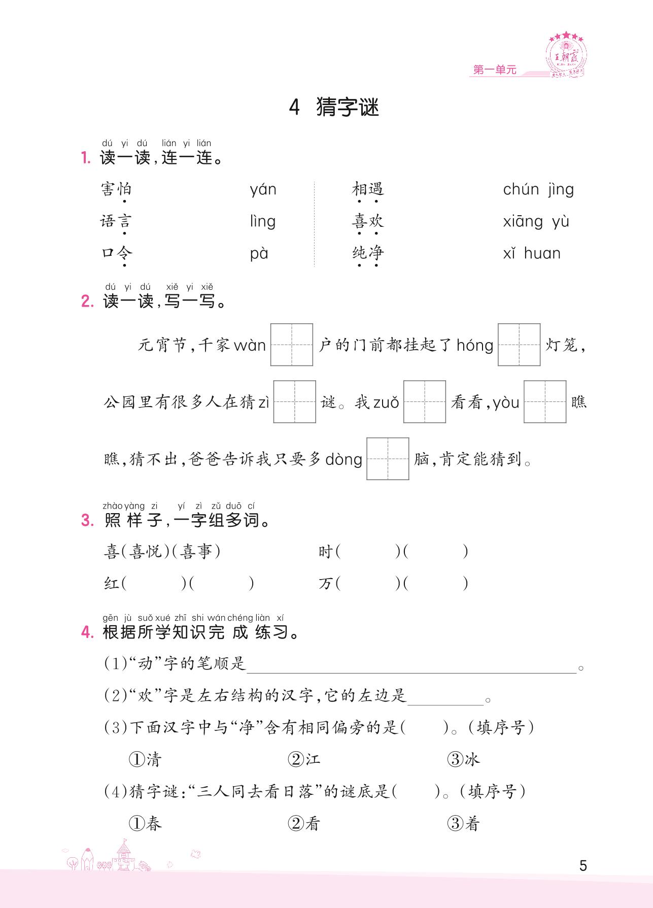 2022下册一年级语文人教版 第一单元——4 猜字谜