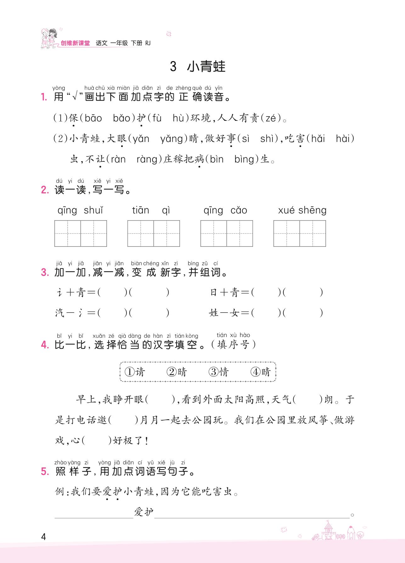 2022下册一年级语文人教版 第一单元——3 小青蛙