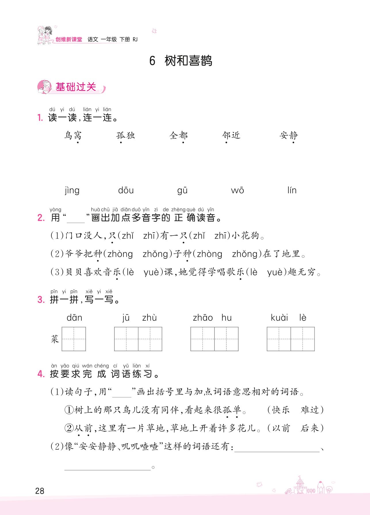 2022下册一年级语文人教版 第三单元——6 树和喜鹊
