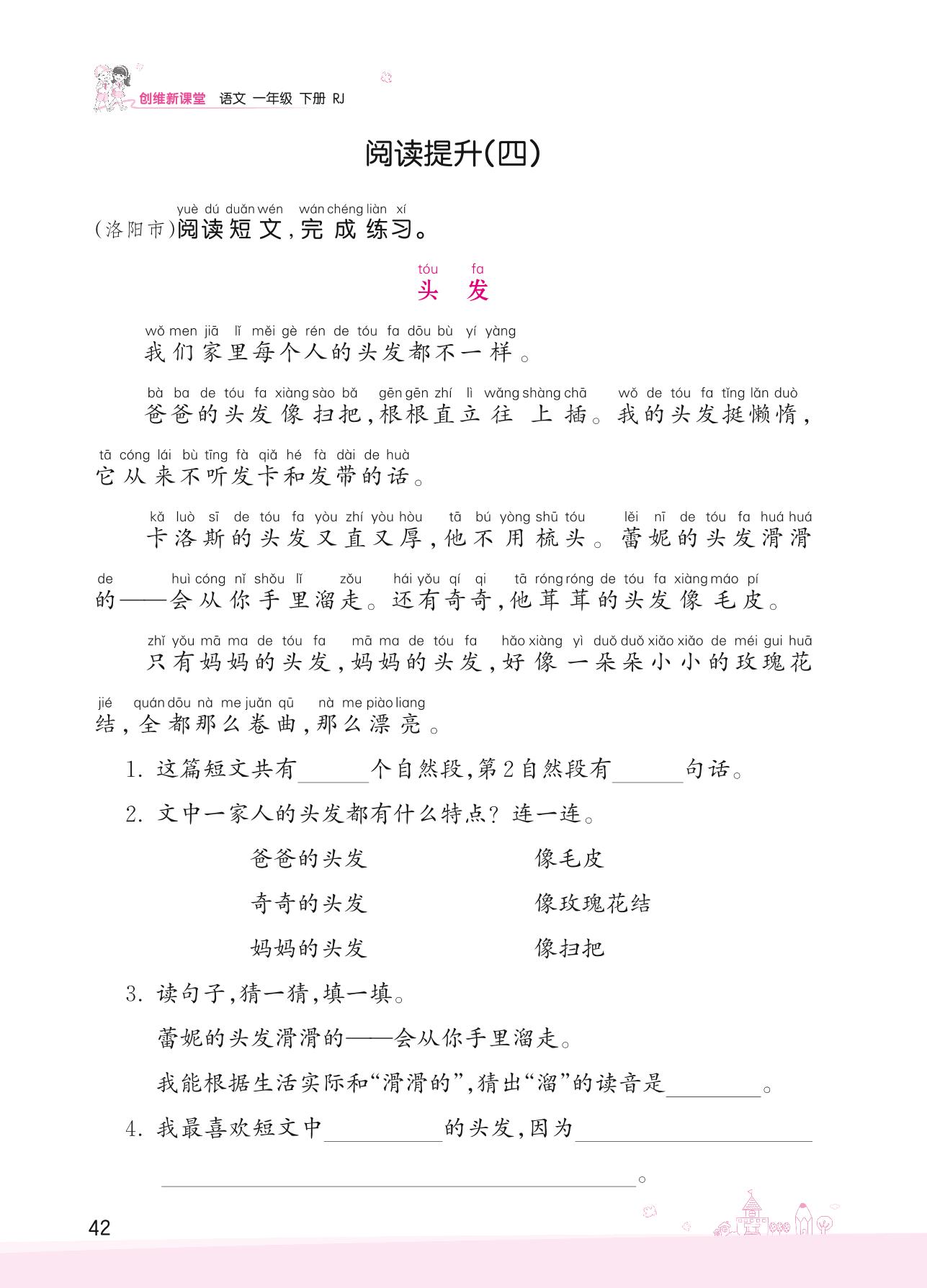 2022下册一年级语文人教版 第四单元——阅读提升(四)