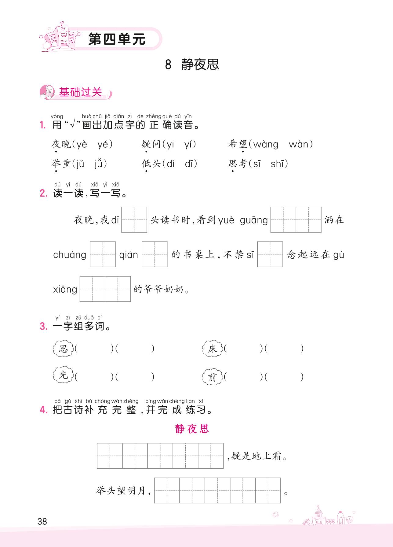 2022下册一年级语文人教版 第四单元——8 静夜思