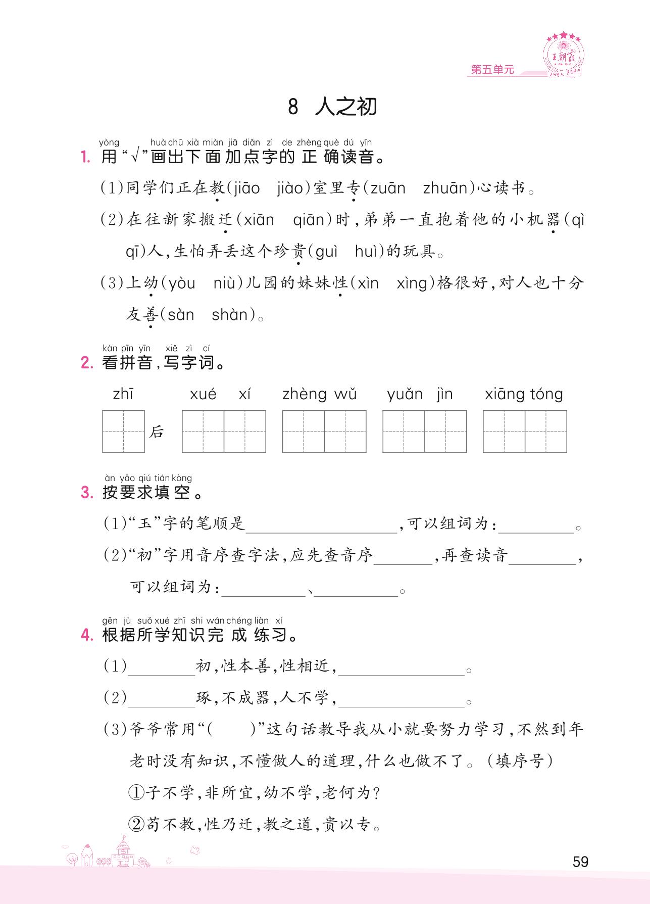 2022下册一年级语文人教版 第五单元——8 人之初
