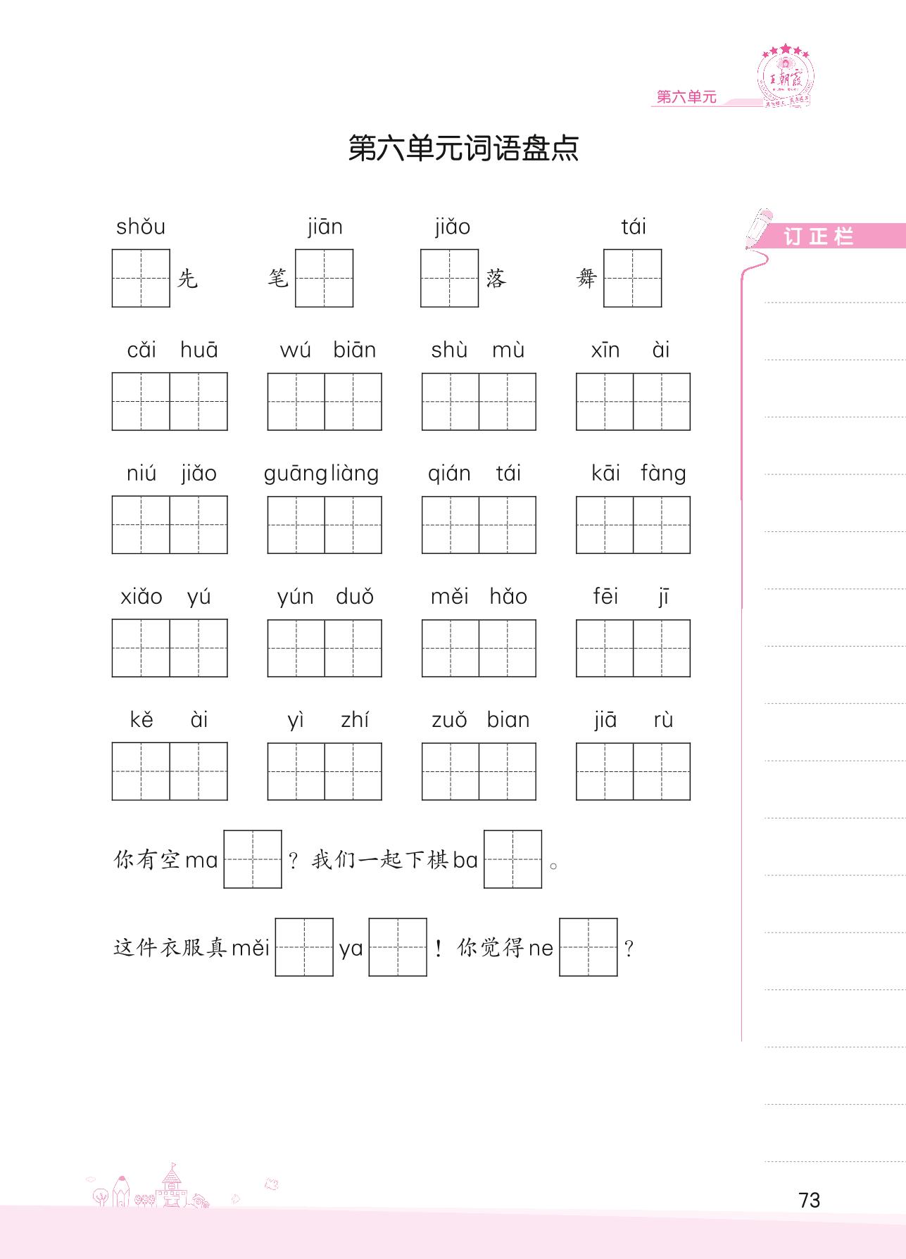 2022下册一年级语文人教版 第六单元词语盘点