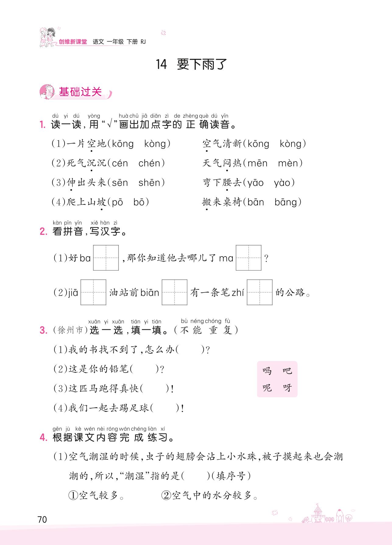 2022下册一年级语文人教版 第六单元——14 要下雨了