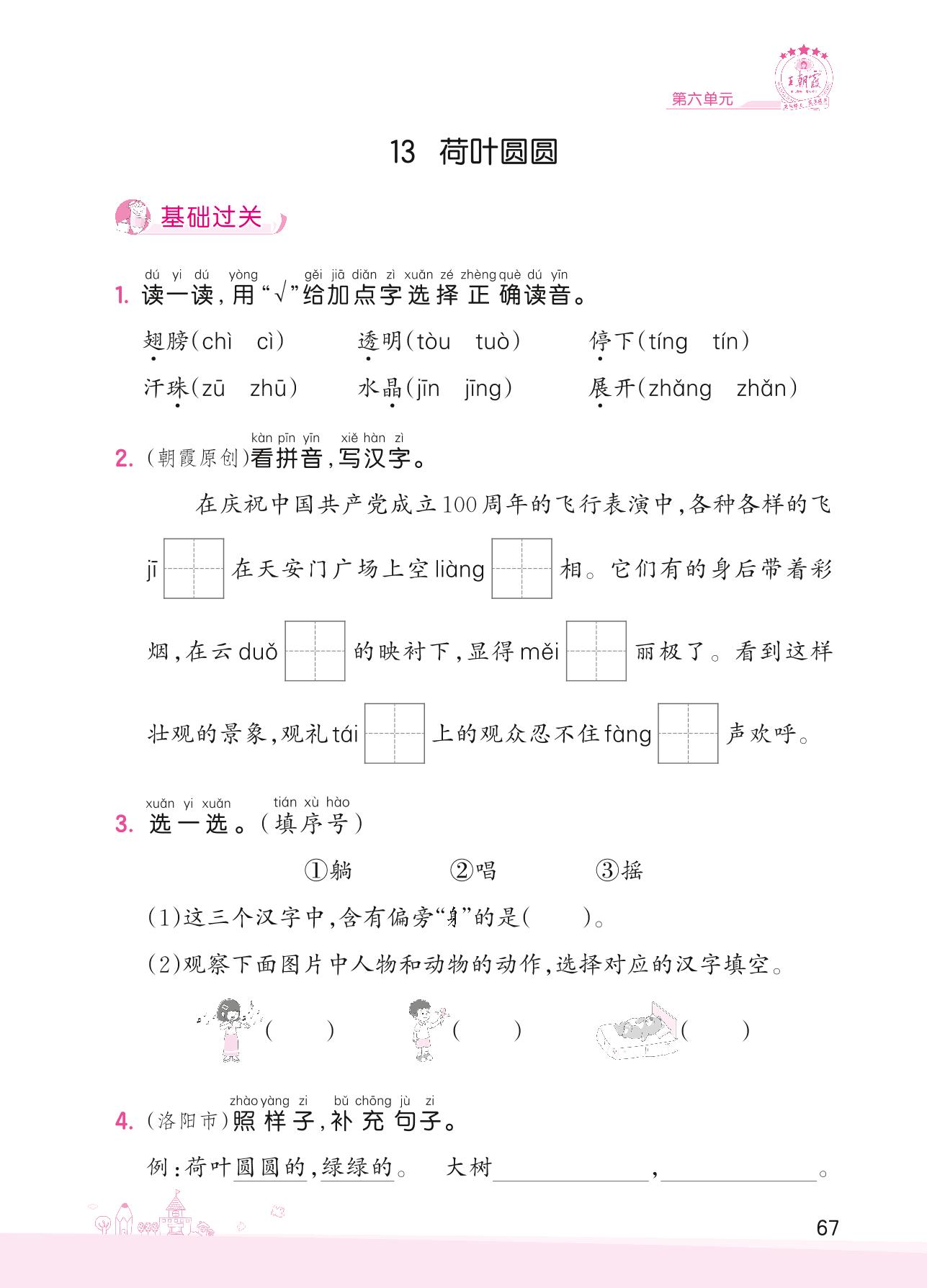 2022下册一年级语文人教版 第六单元——13 荷叶圆圆