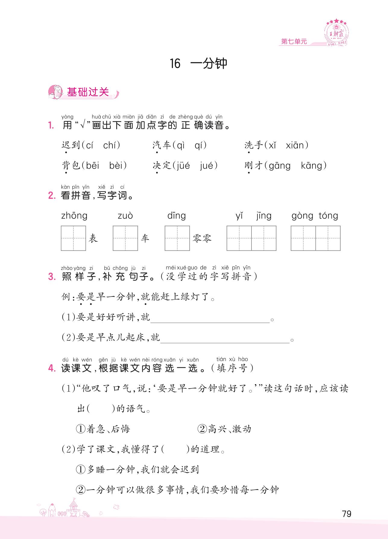 2022下册一年级语文人教版 第七单元——16 一分钟