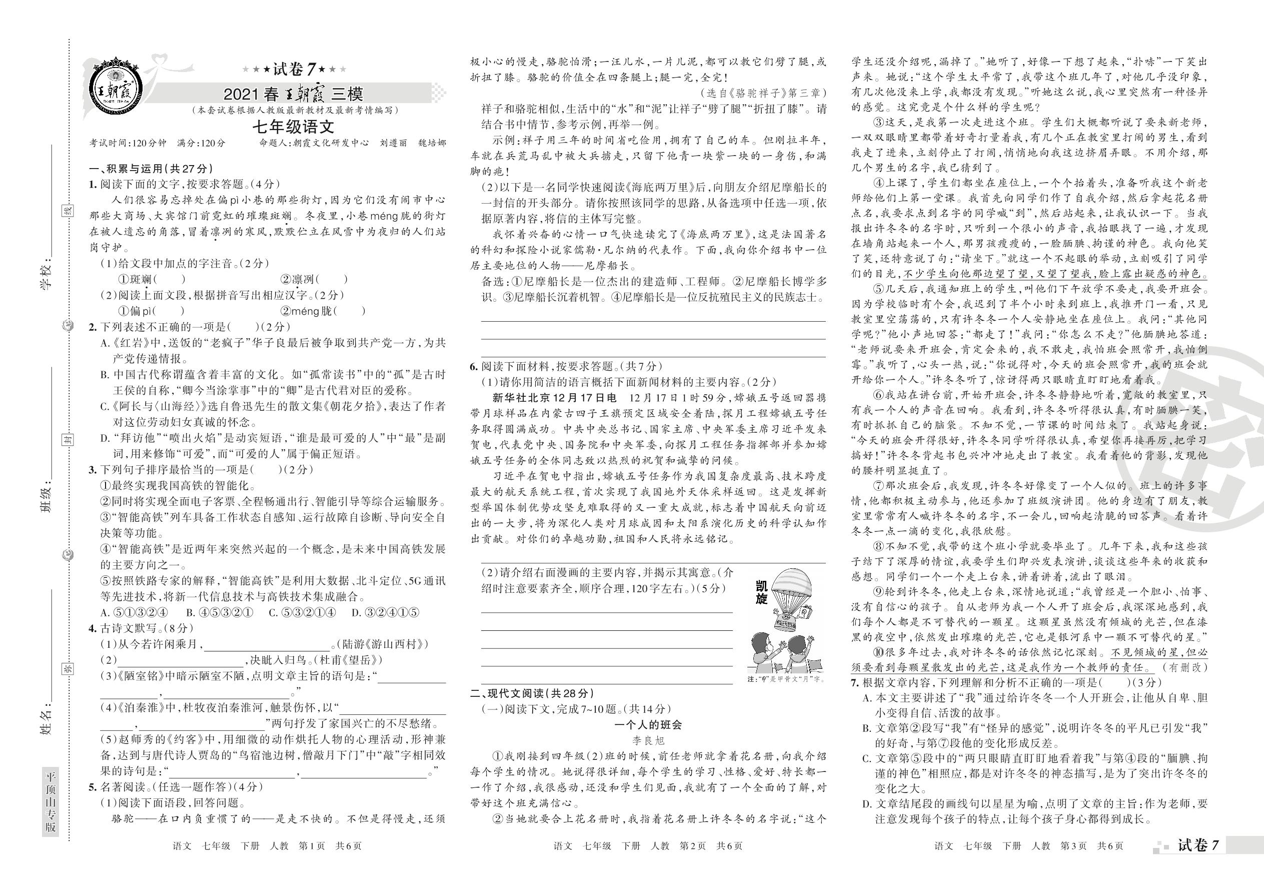 王朝霞期末模拟卷七年级下册语文(人教版)_R210801234501【7】