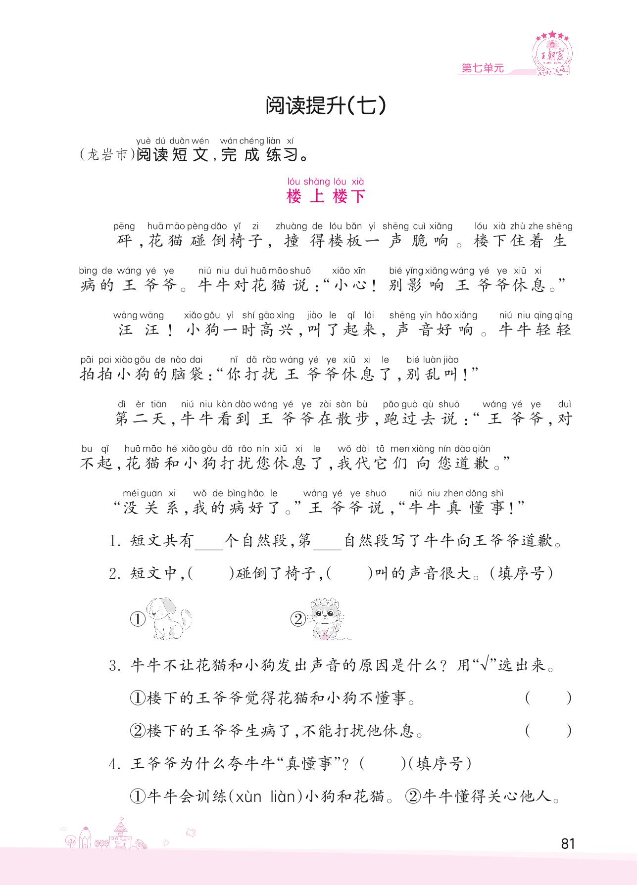 2022下册一年级语文人教版 第七单元——阅读提升(七)