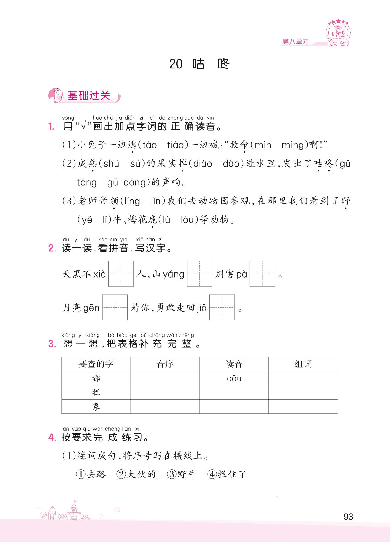 2022下册一年级语文人教版 第八单元——20 咕咚