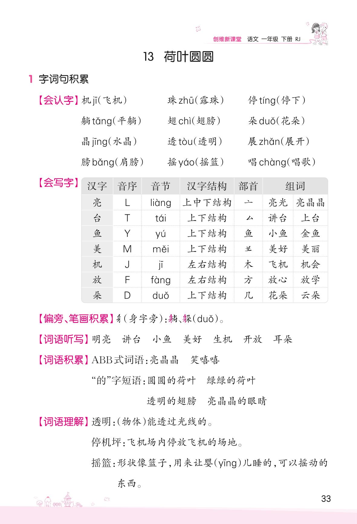 2022下册一年级语文人教版 第六单元——13 荷叶圆圆_R220125165349721