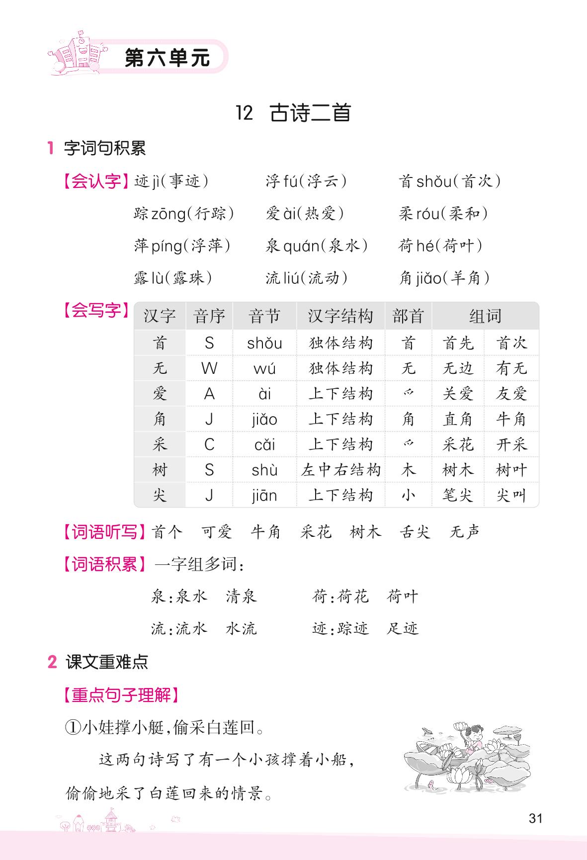 2022下册一年级语文人教版 第六单元——12 古诗二首_R220125165350221