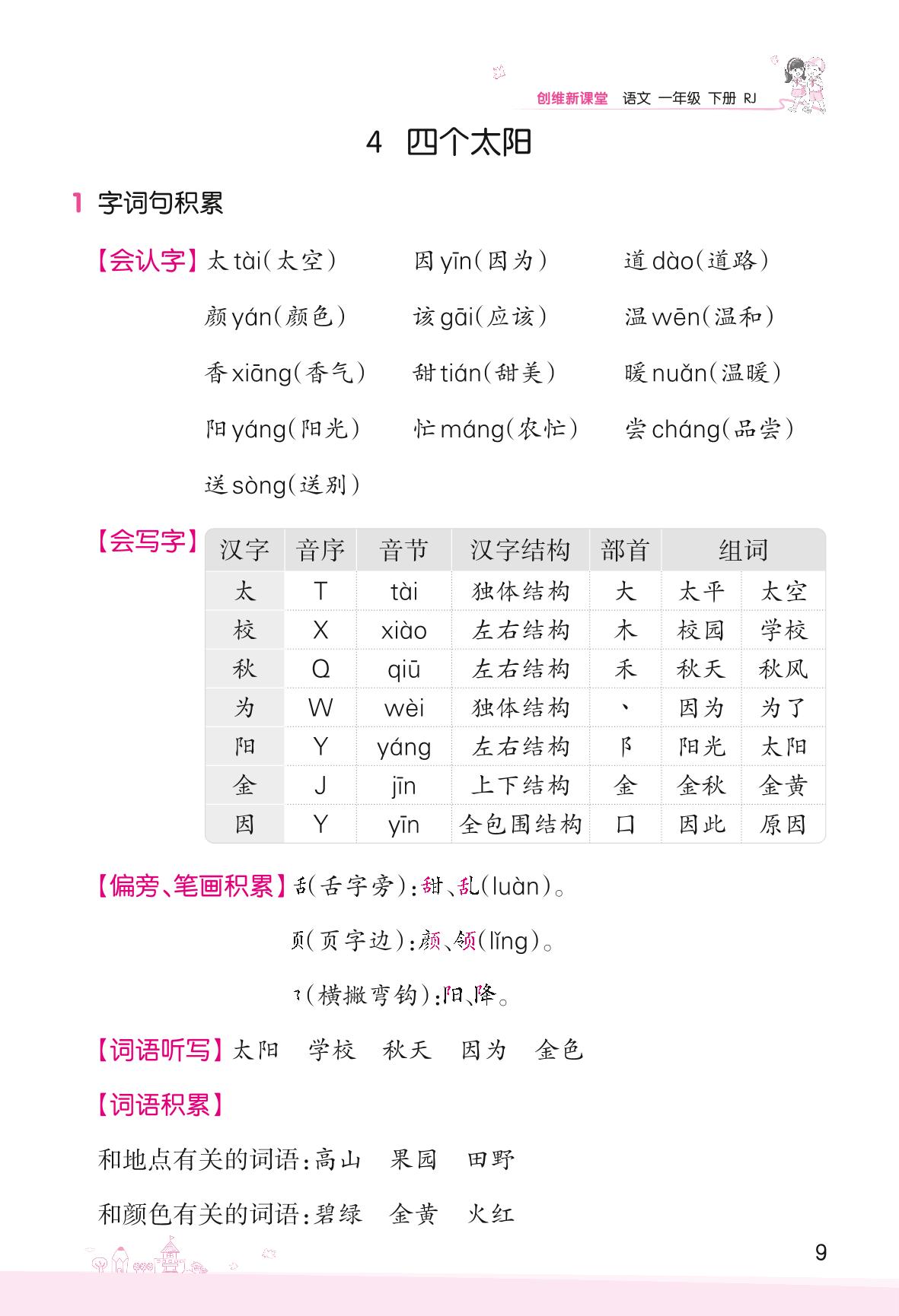 2022下册一年级语文人教版 第二单元——4 四个太阳_R220125165350653