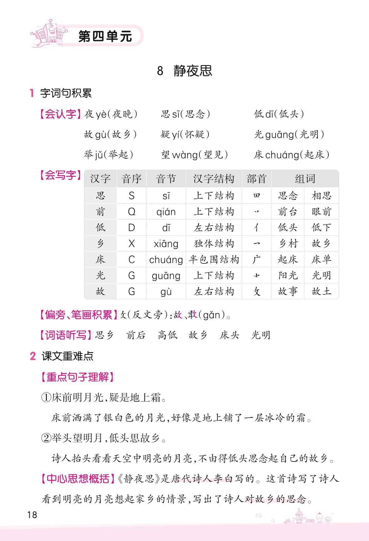 2022下册一年级语文人教版 第四单元——8 静夜思_R220125165351458