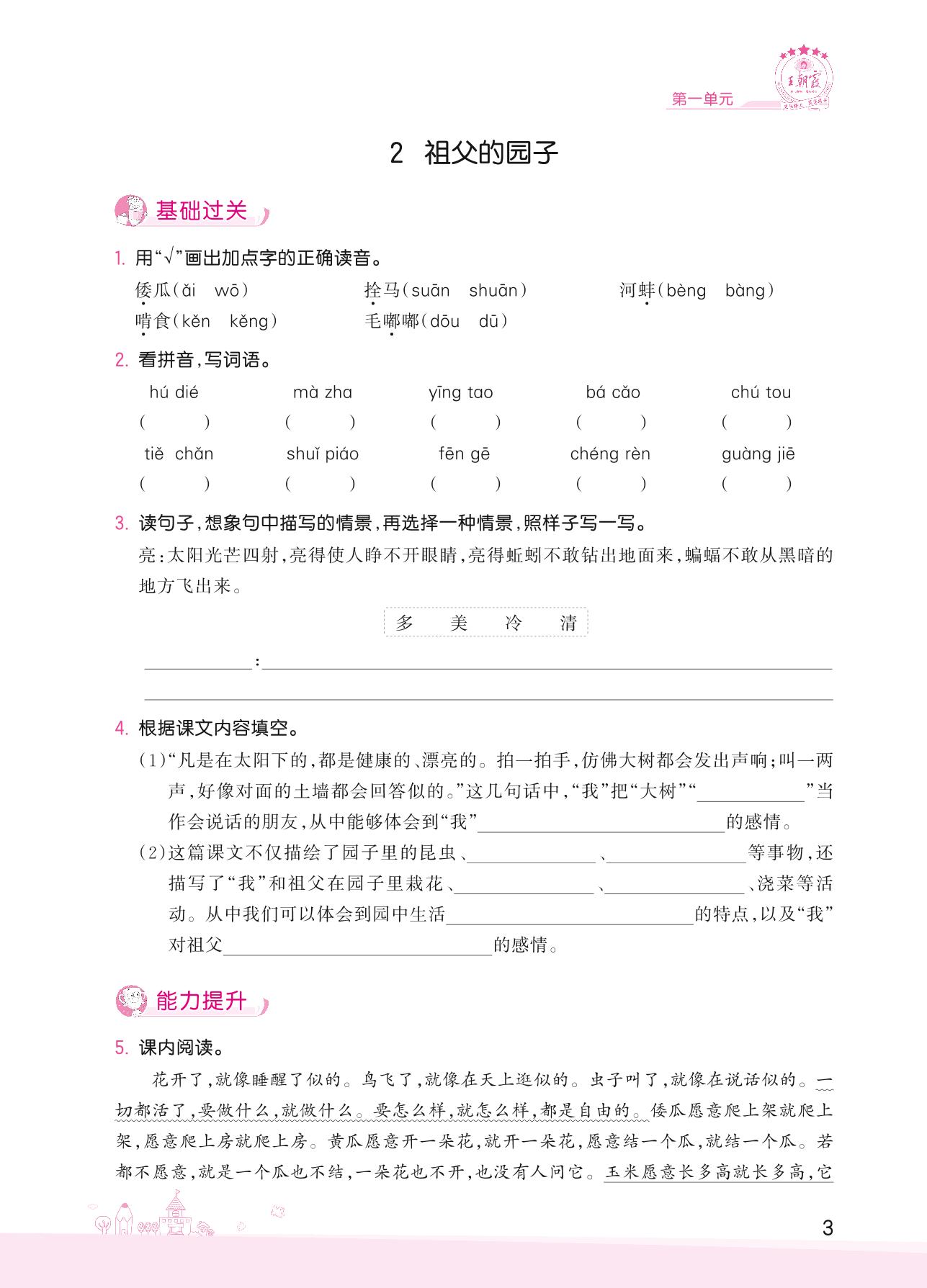 2022下册五年级语文人教版 第一单元——2 祖父的园子