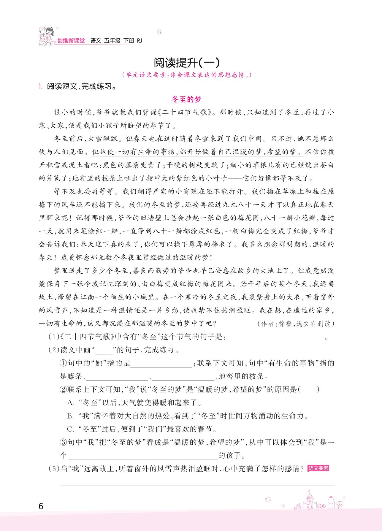 2022下册五年级语文人教版 第一单元——阅读提升(一)