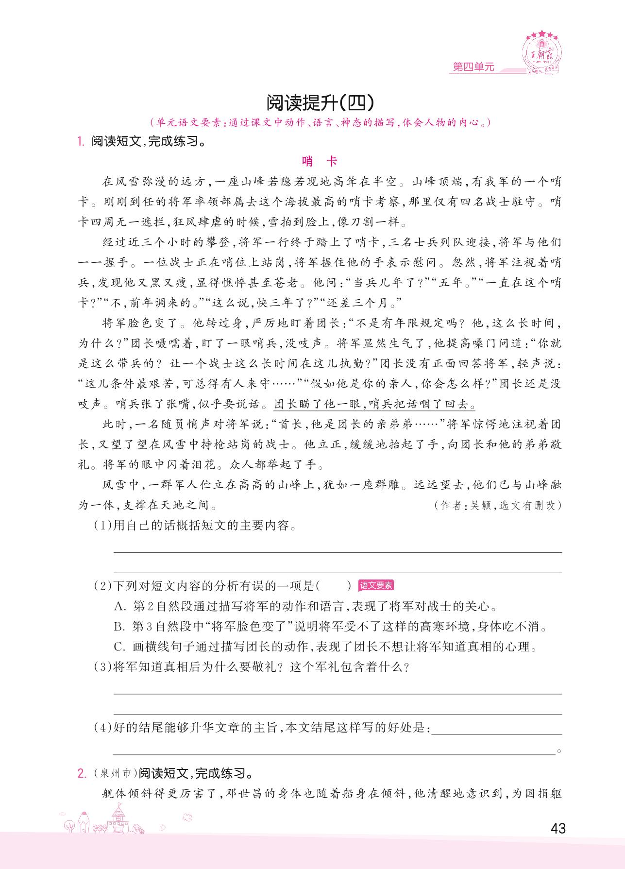 2022下册五年级语文人教版 第四单元——阅读提升(四)
