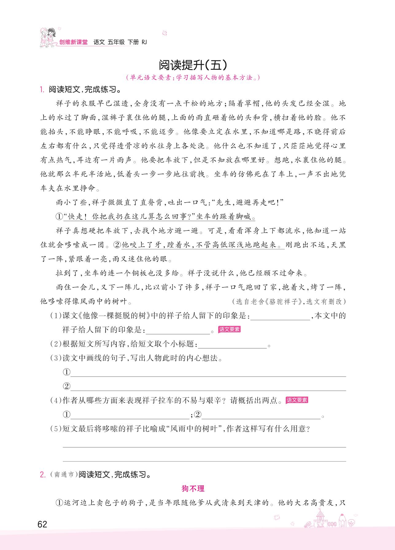 2022下册五年级语文人教版 第五单元——阅读提升(五)