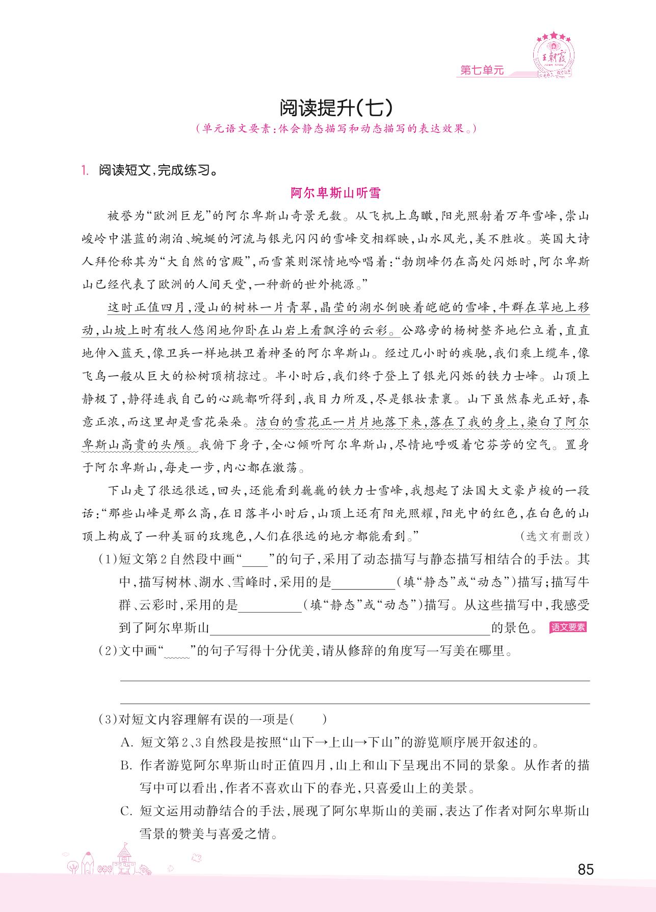 2022下册五年级语文人教版 第七单元——阅读提升(七)