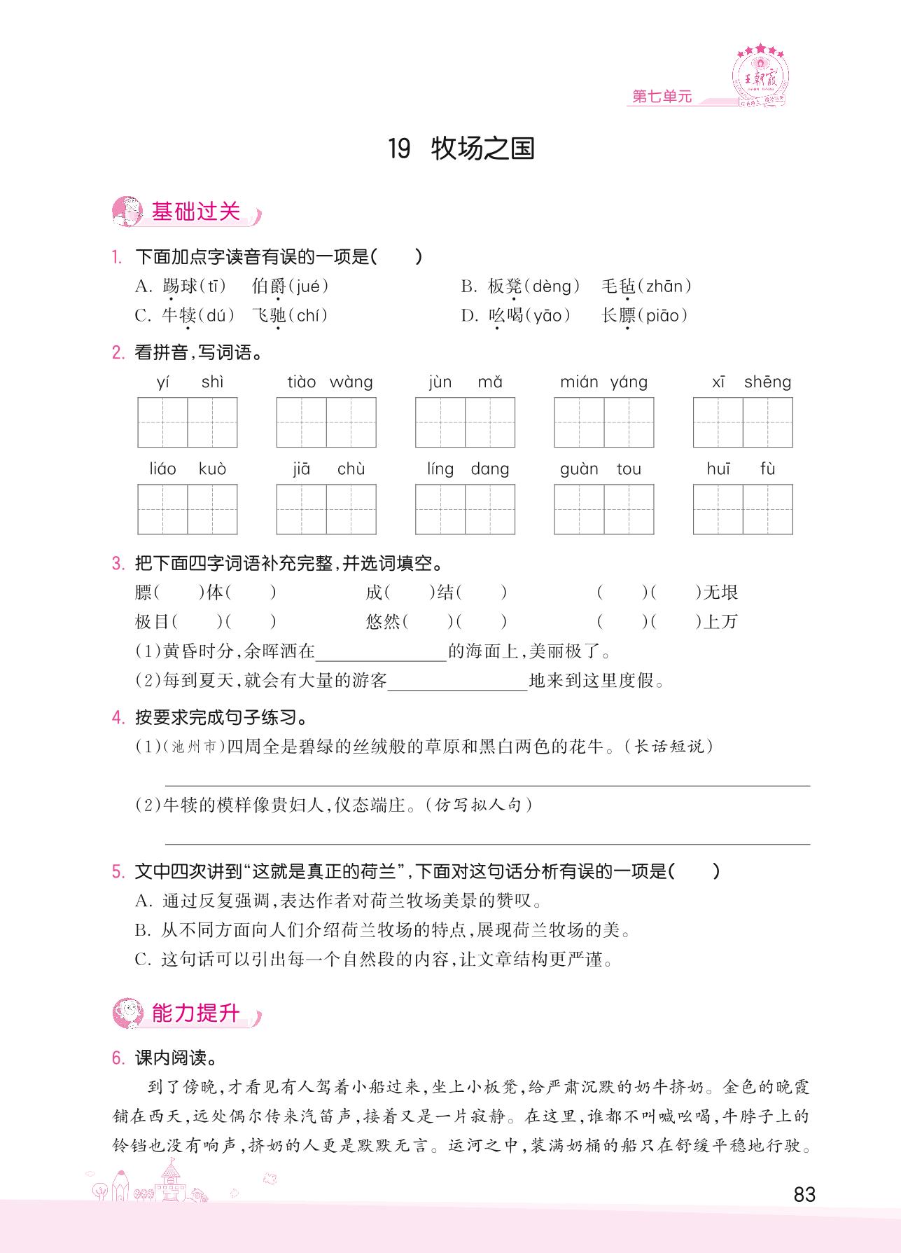 2022下册五年级语文人教版 第七单元——19 牧场之国