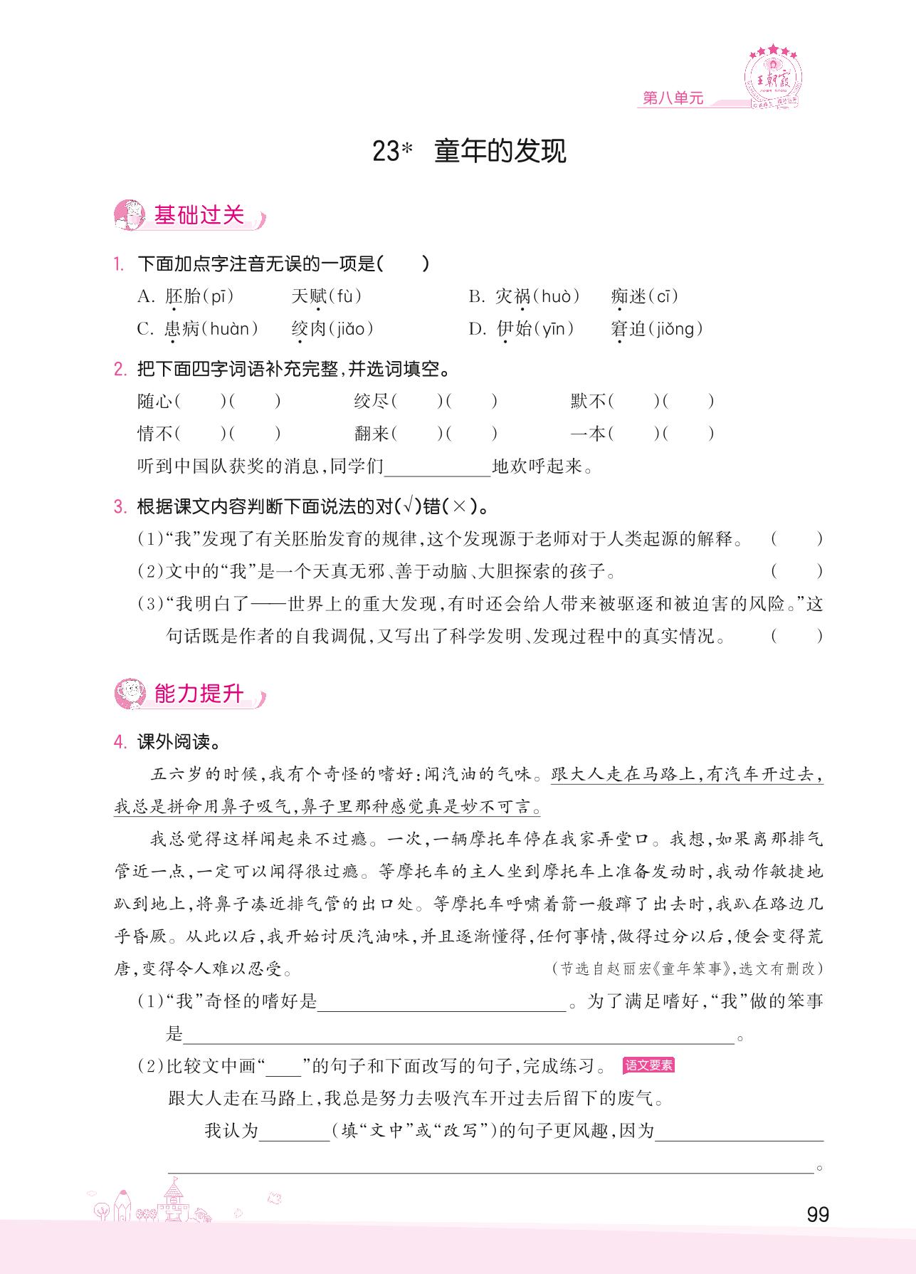 2022下册五年级语文人教版 第八单元——23 童年的发现