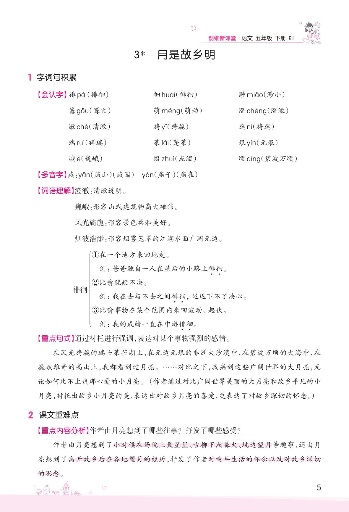 2022下册五年级语文人教版 第一单元——3 月是故乡明_R220125173054508