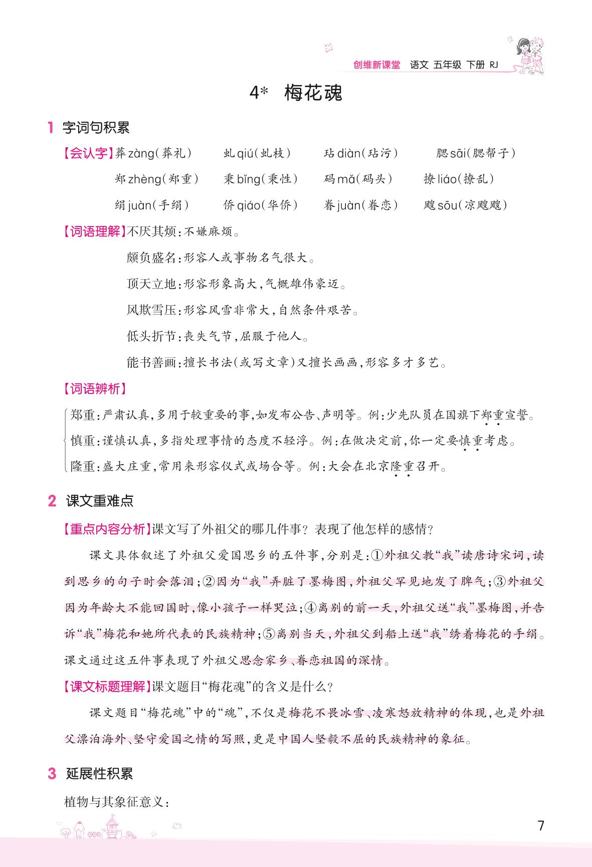 2022下册五年级语文人教版 第一单元——4 梅花魂_R220125173054717