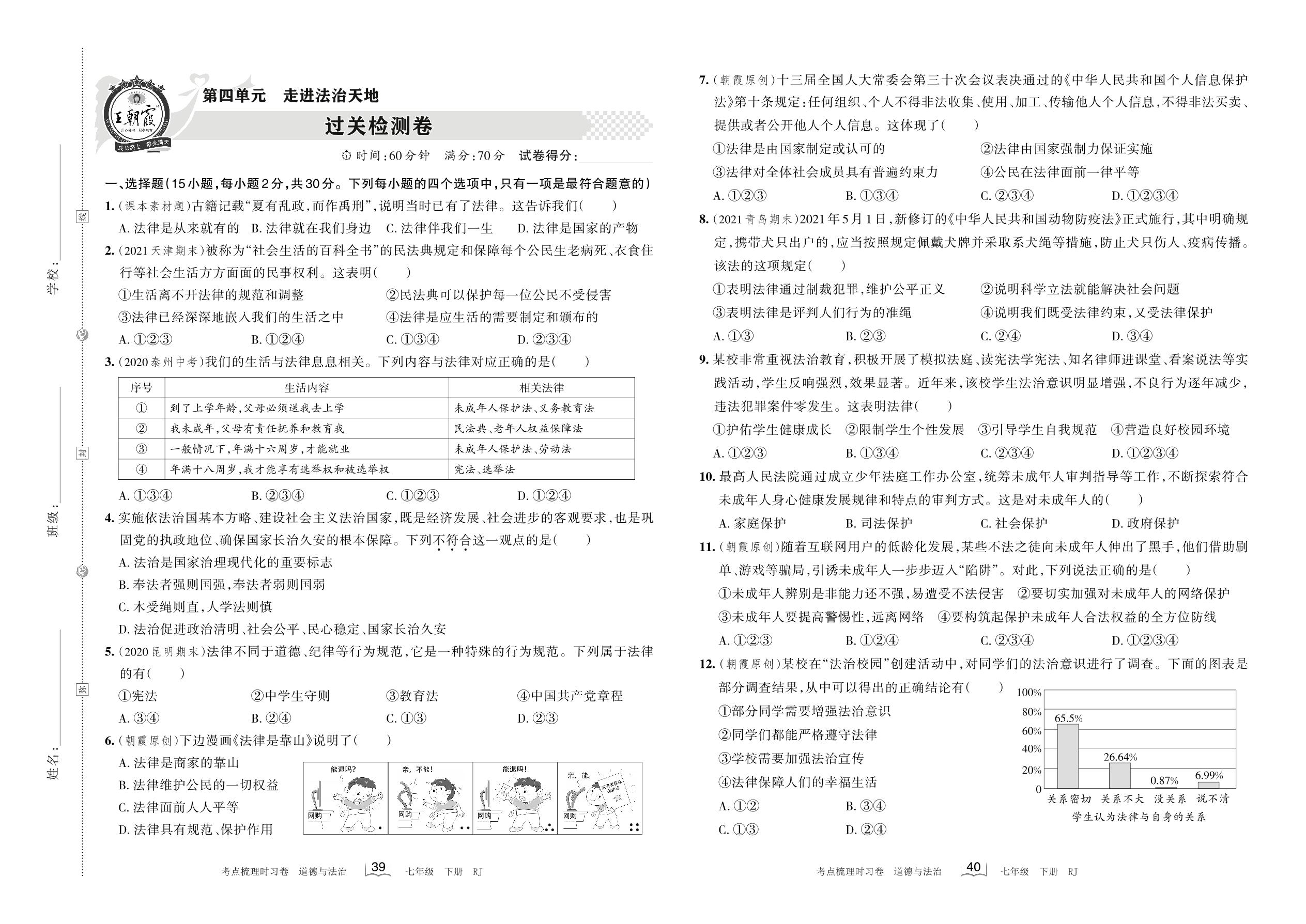 2022下册七年级道德与法治人教版 第四单元 过关检测卷