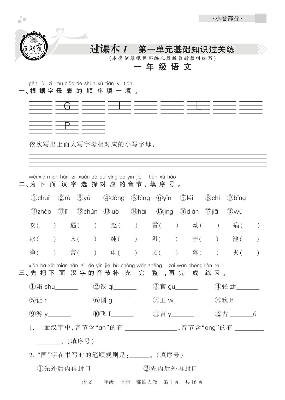 王朝霞期末小卷一年级下册语文(人教版)_R210731182845【0】