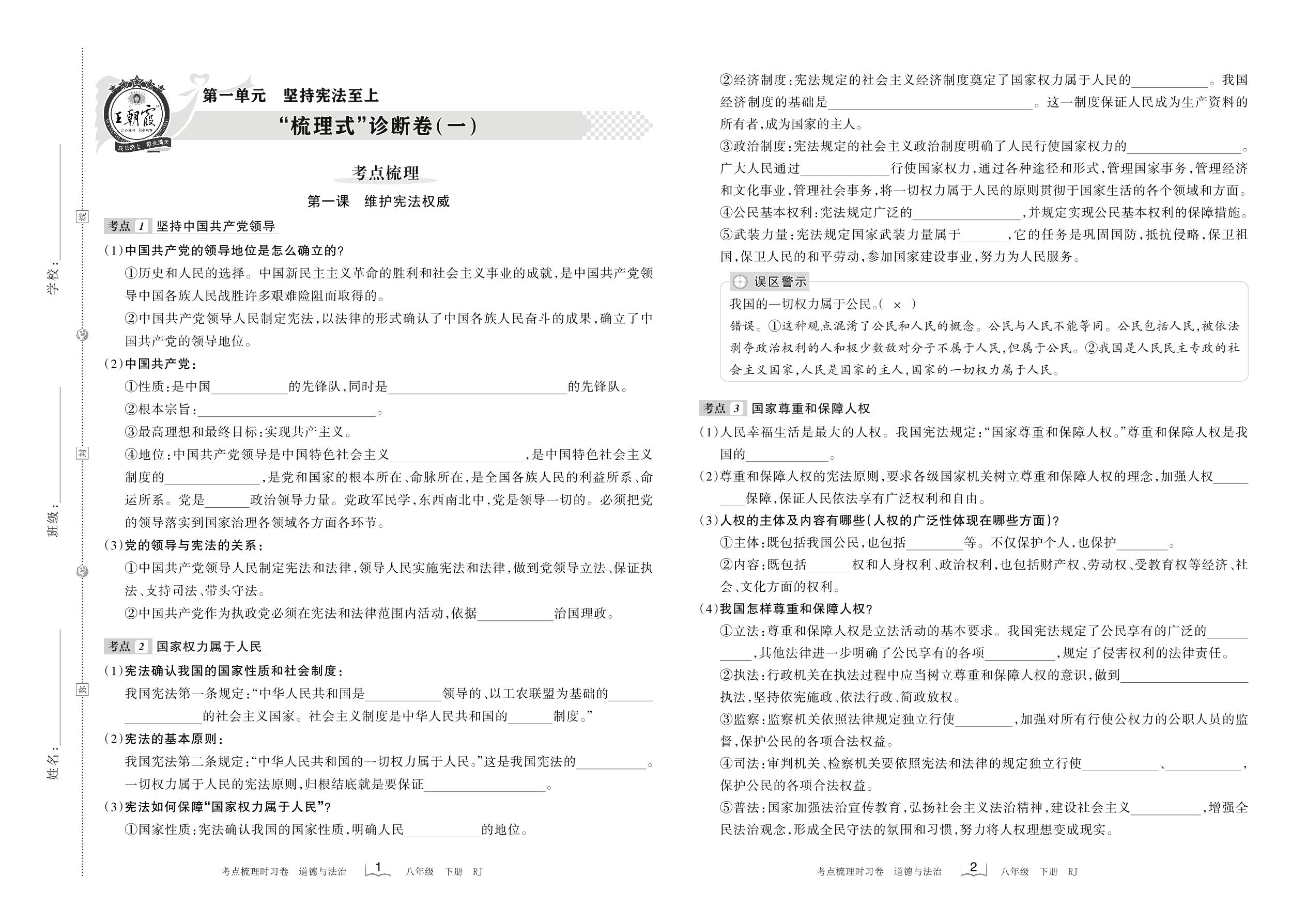 八年级道德与法治人教版下册单元卷