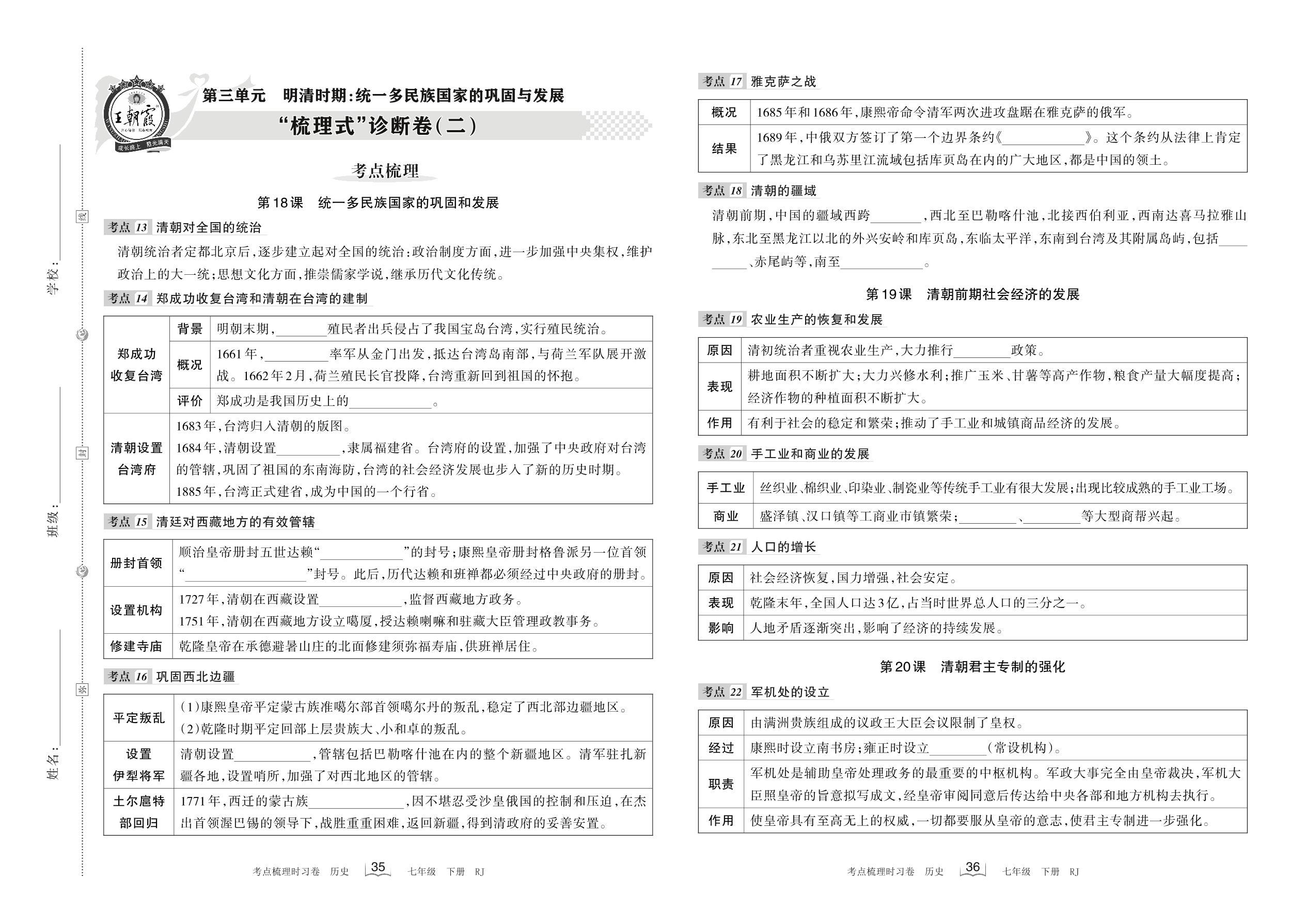 2022下册七年级历史人教版 第三单元 “梳理式”诊断卷(二)