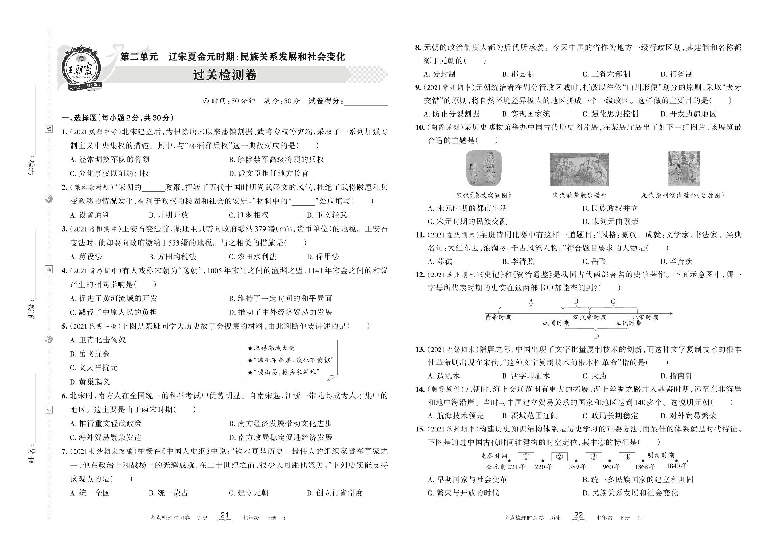 2022下册七年级历史人教版 第二单元 过关检测卷
