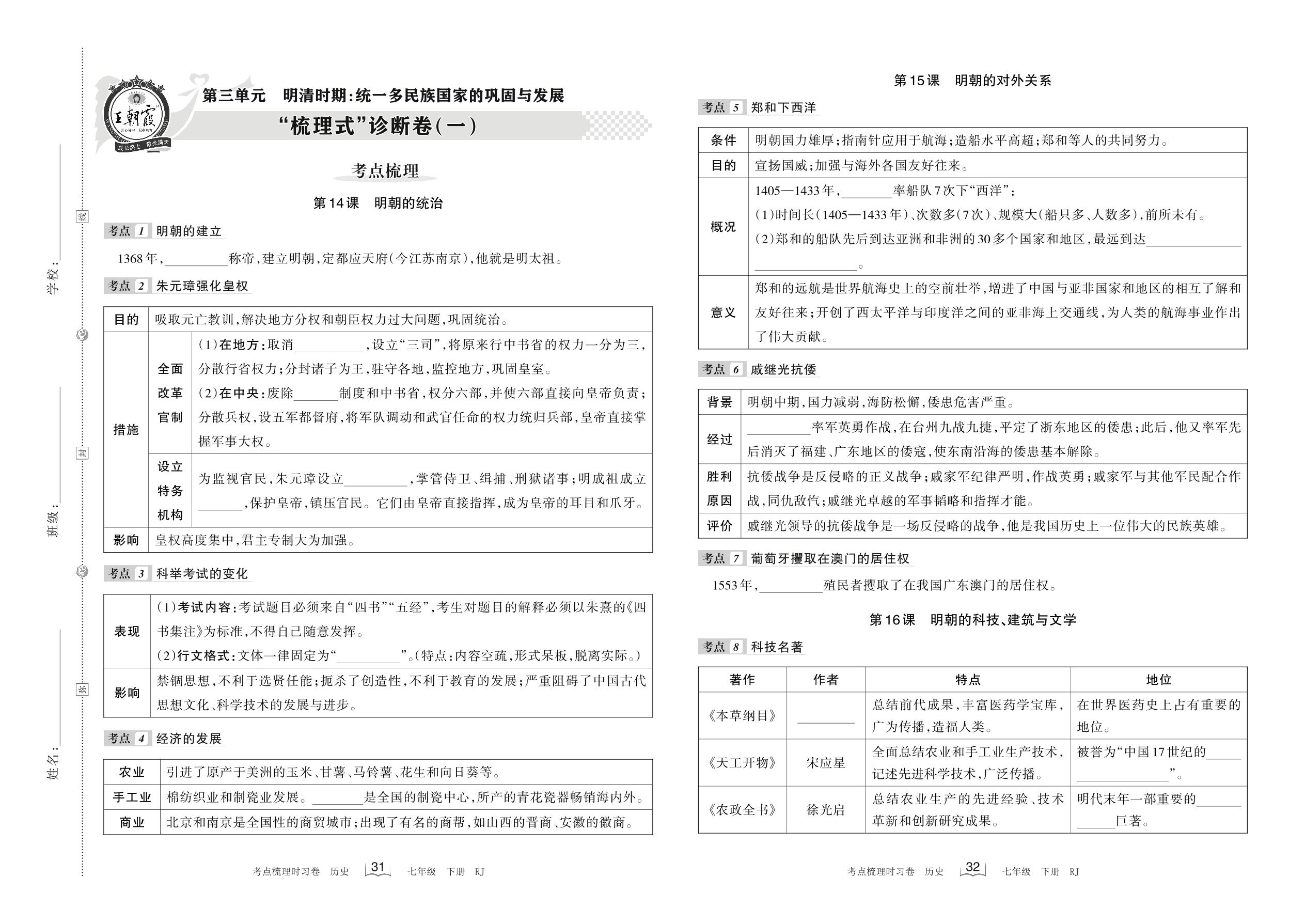 七年级历史人教版下册单元卷