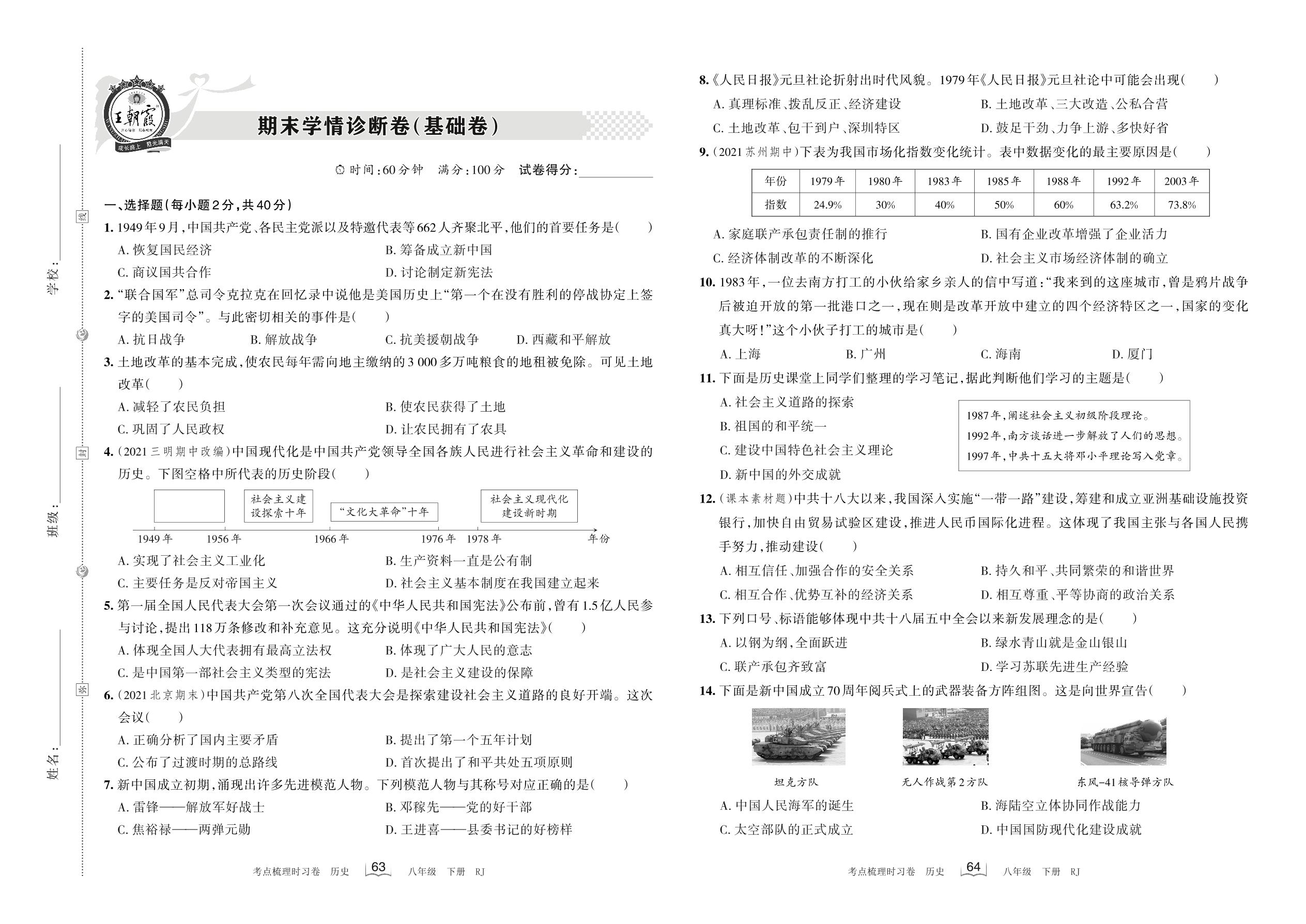 2022下册八年级历史人教版 期末学情诊断卷(基础卷)