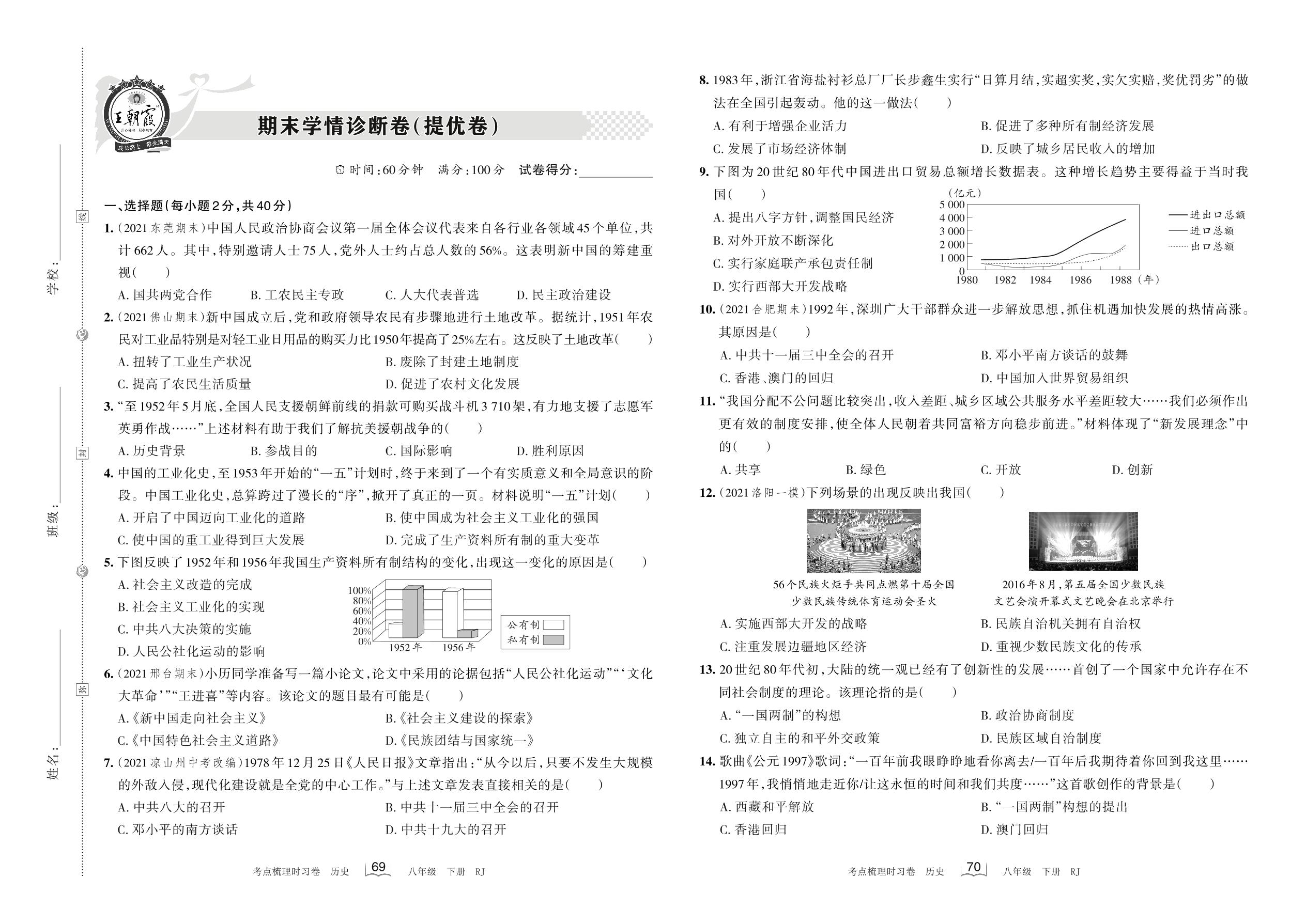 2022下册八年级历史人教版 期末学情诊断卷(提优卷)