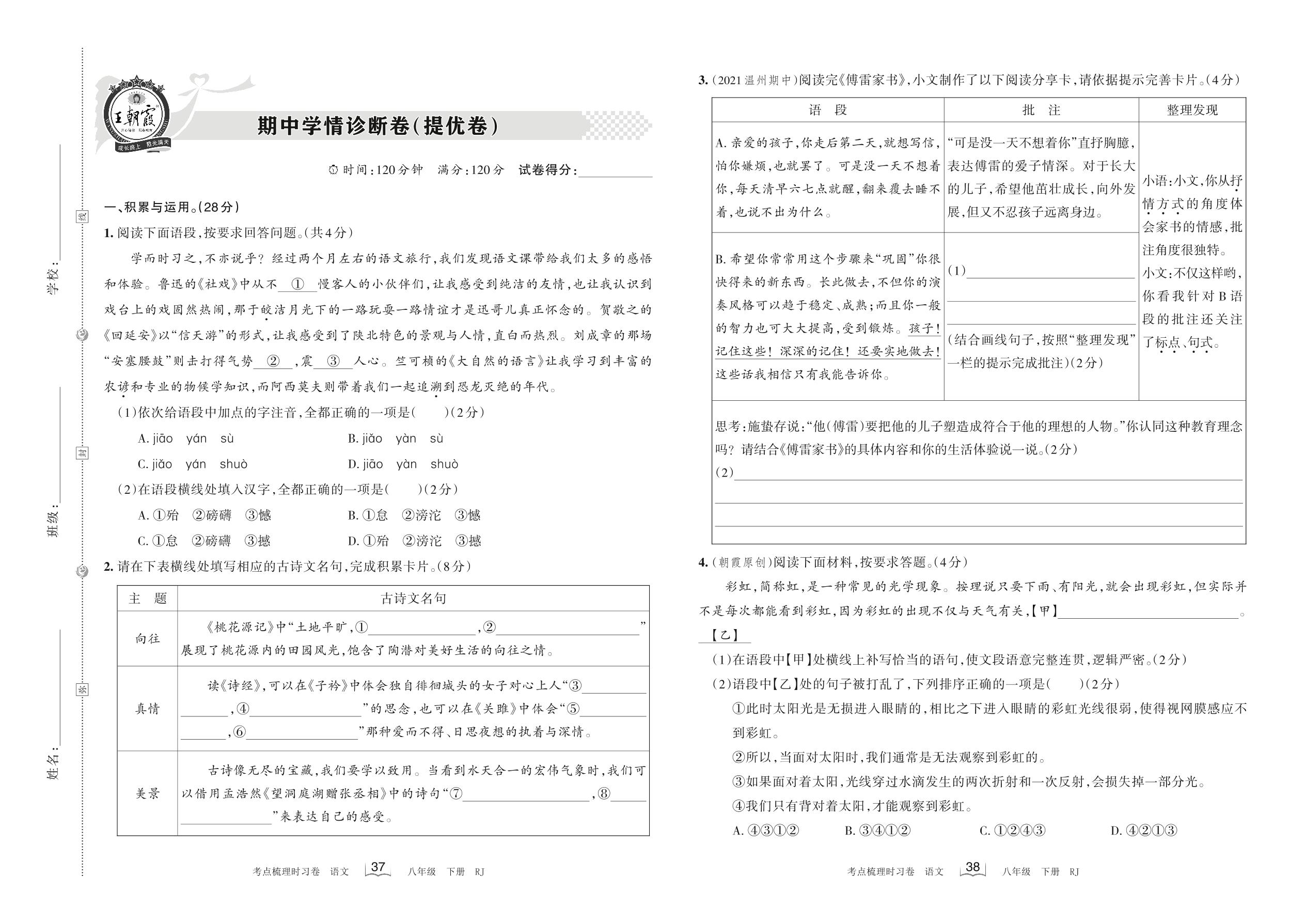 2022下册八年级语文人教版 期中学情诊断卷(提优卷)