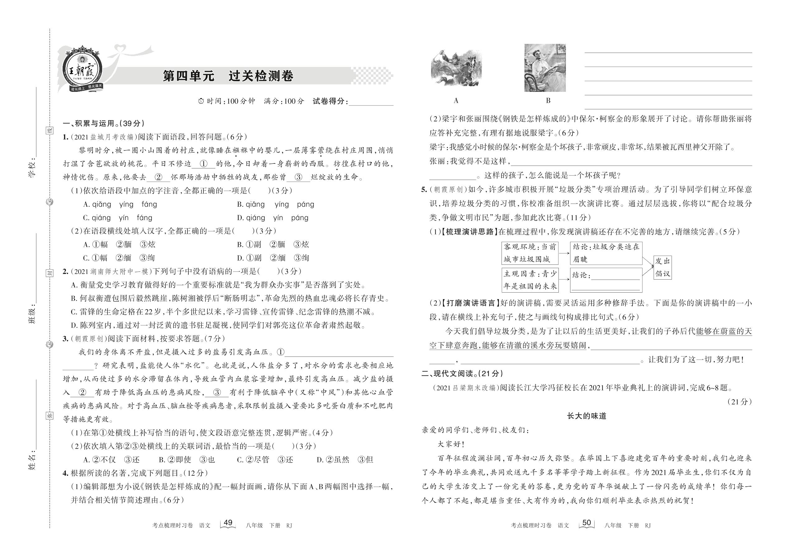 2022下册八年级语文人教版 第四单元 过关检测卷