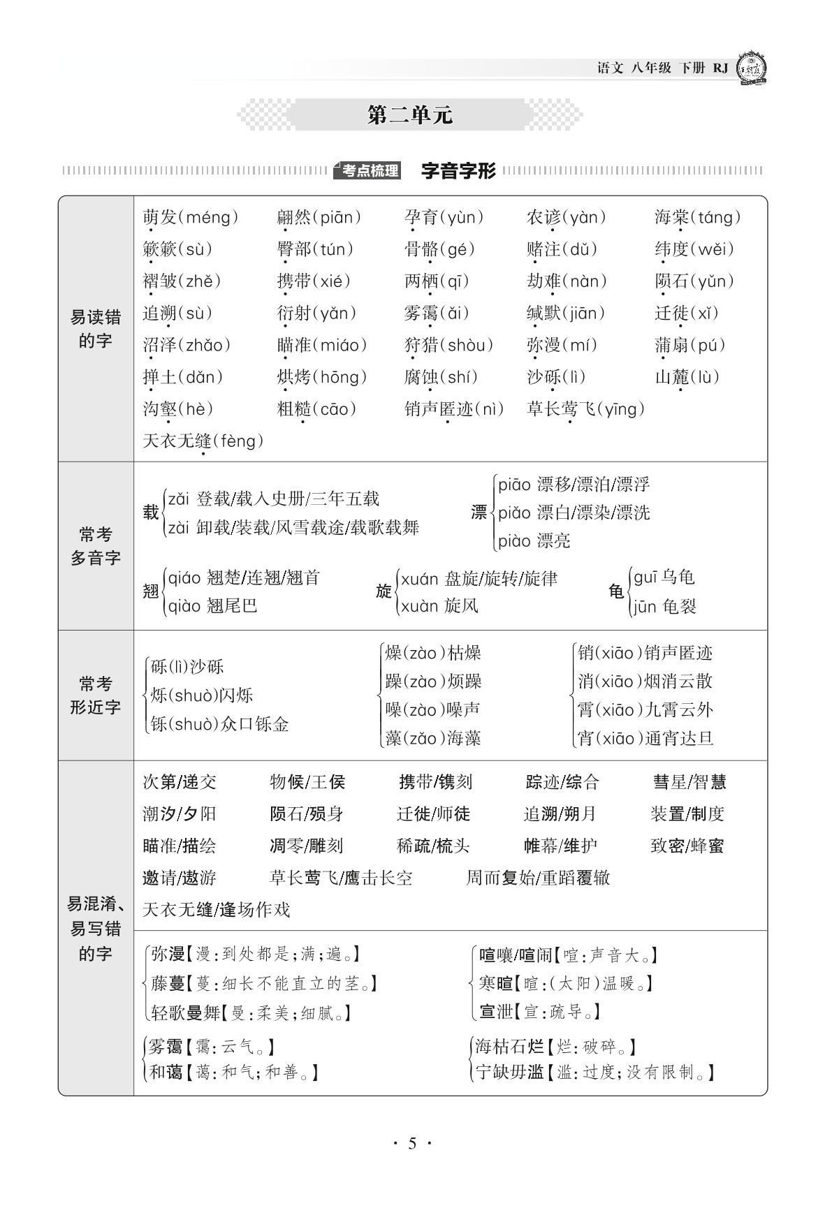 2022下册八年级语文人教版 考点梳理手册——第二单元