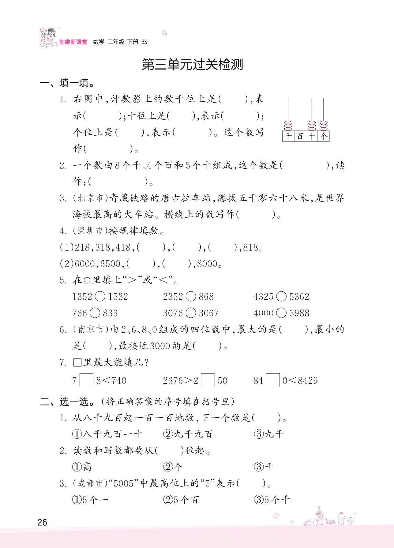 2022下册二年级数学北师版 三 生活中的大数——第三单元过关检测