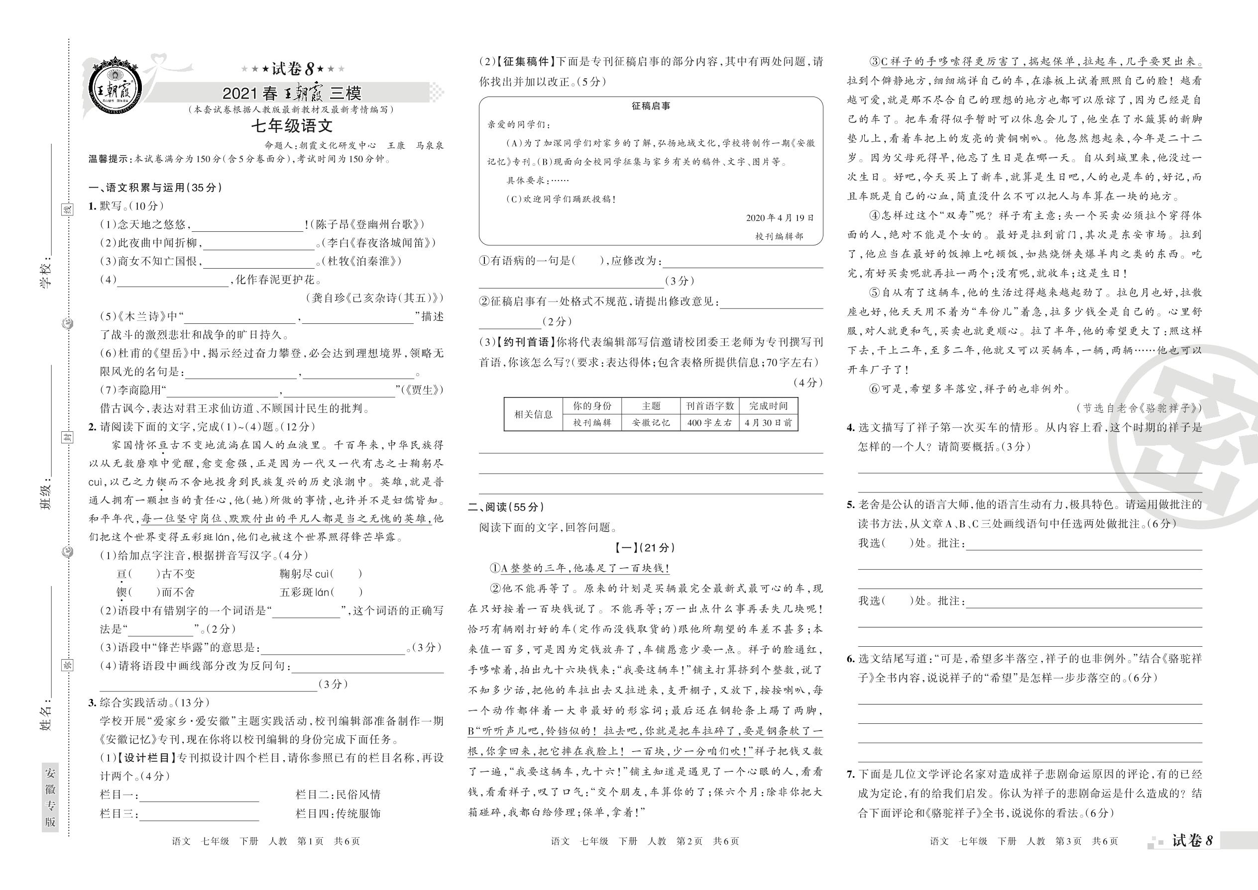 王朝霞期末模拟卷七年级下册语文(人教版)_R210801235030【8】