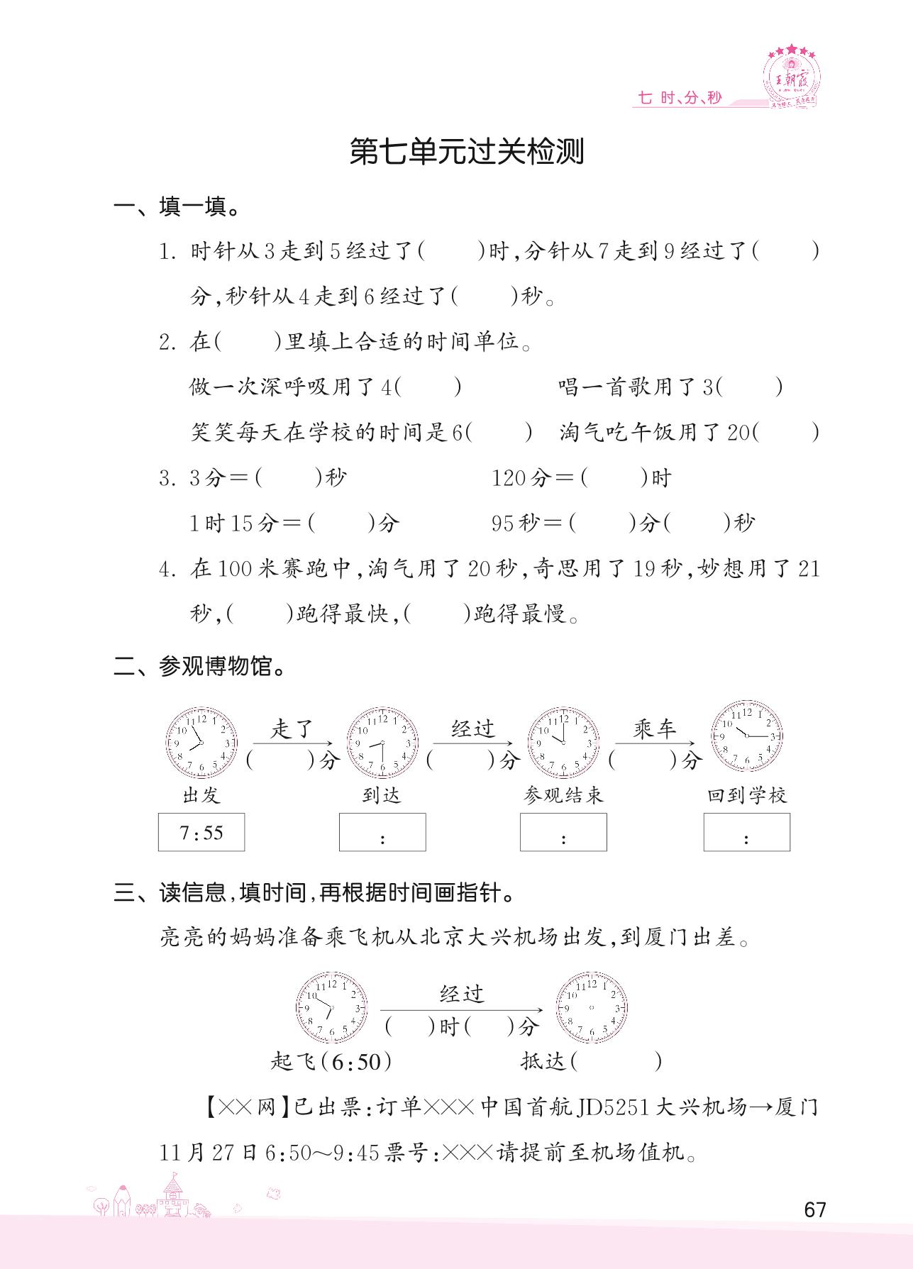 2022下册二年级数学北师版 七 时、分、秒——第七单元过关检测