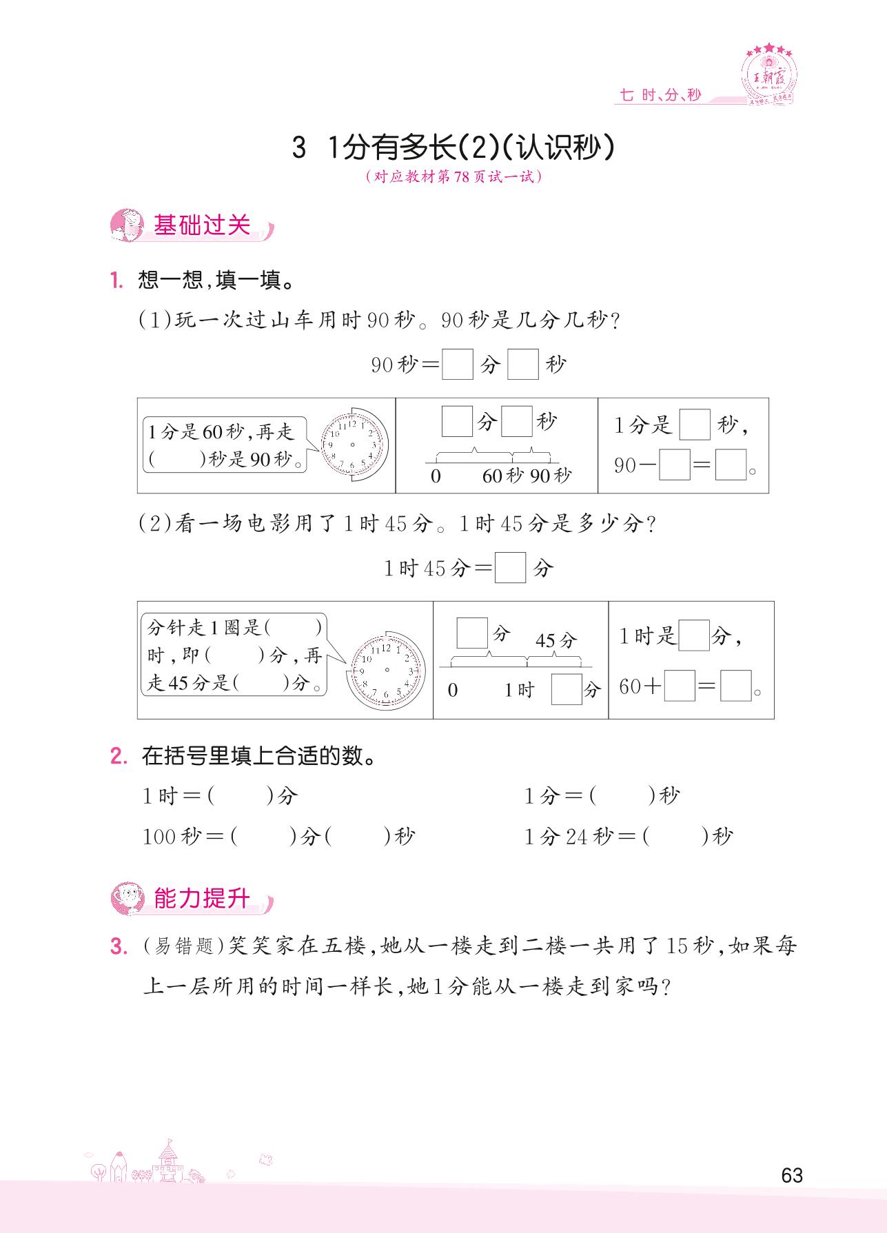 2022下册二年级数学北师版 七 时、分、秒——3 1分有多长(2)