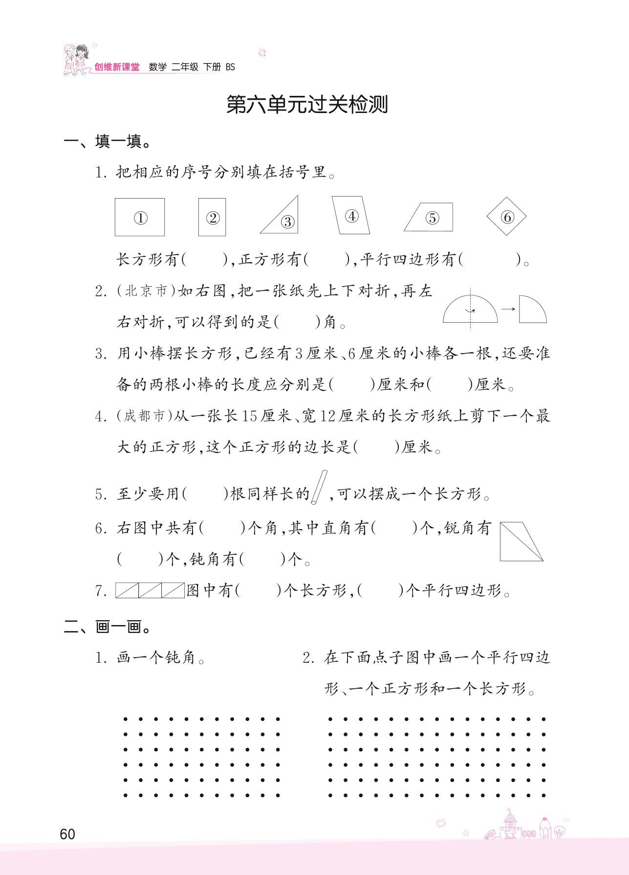 2022下册二年级数学北师版 六 认识图形——第六单元过关检测