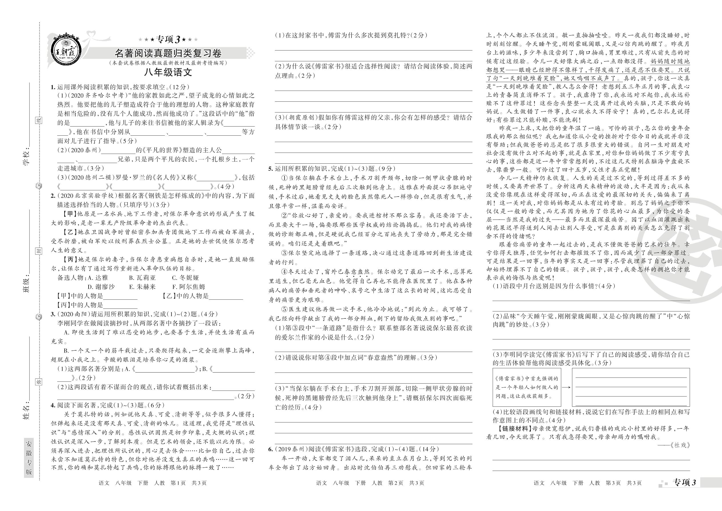 王朝霞期末专项卷——名著阅读、综合性学习真题归类复习八年级下册语文(人教版)【0】