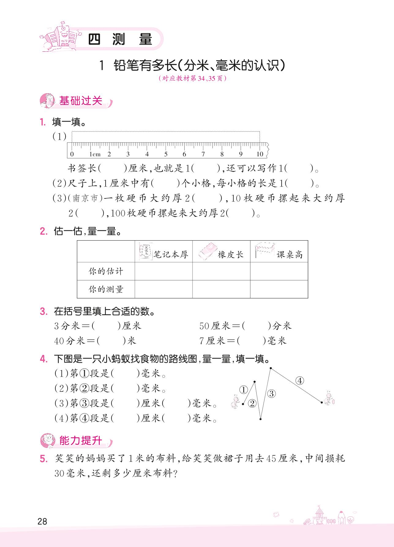 2022下册二年级数学北师版 四 测量——1 铅笔有多长