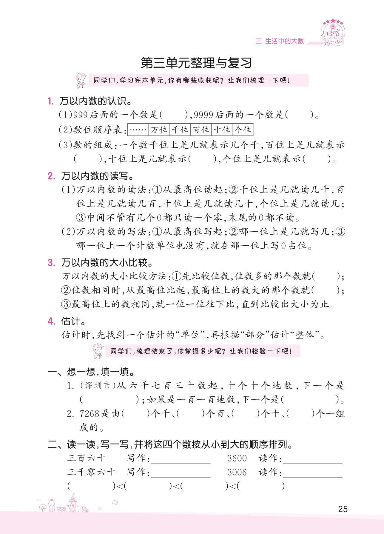 2022下册二年级数学北师版 三 生活中的大数——第三单元整理与复习